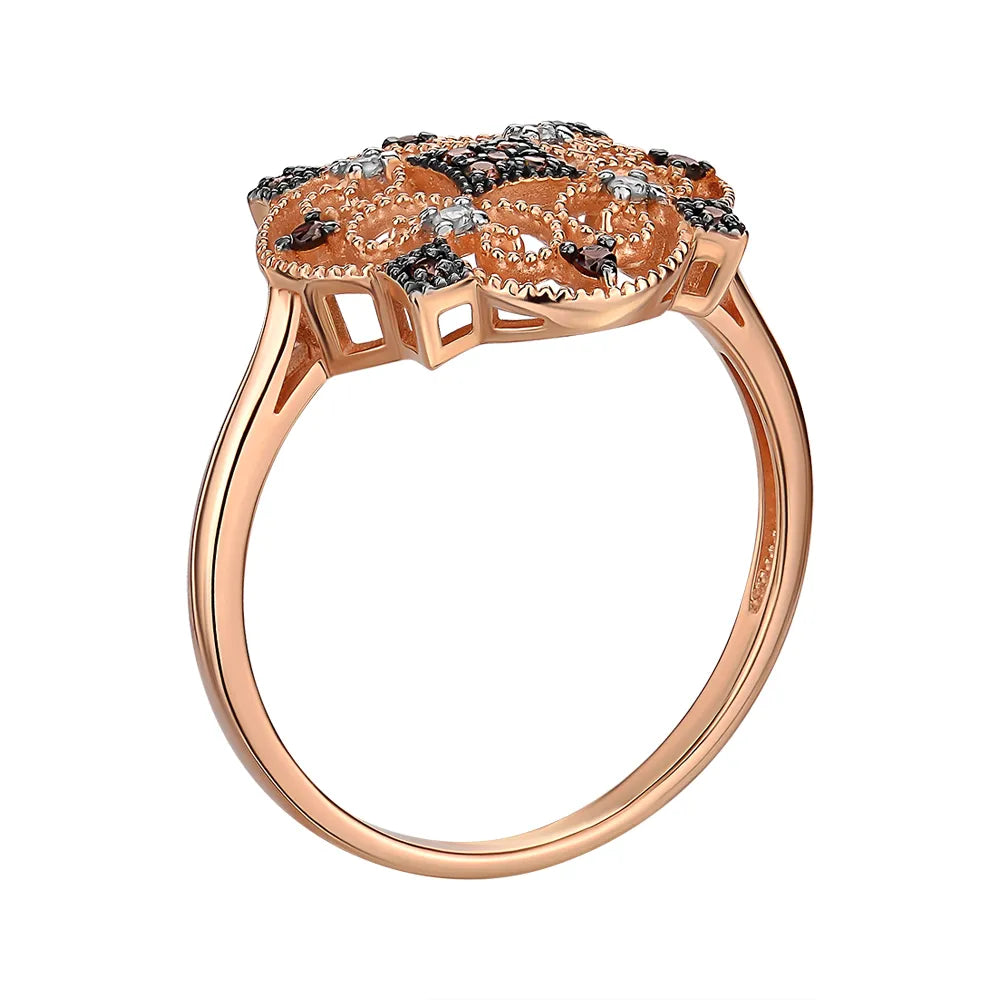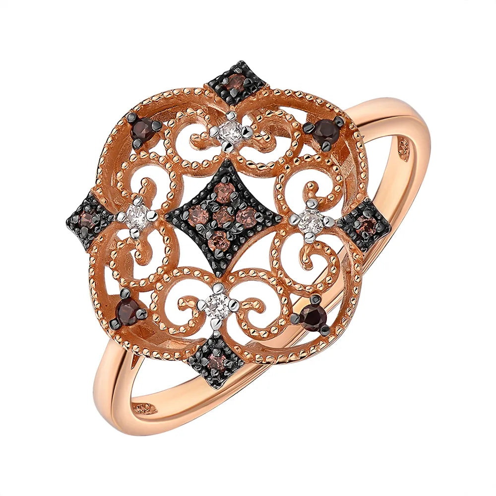 Каблучка з червоного золота з фіанітом 13652/01/1/318