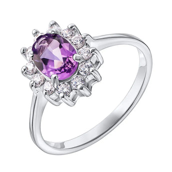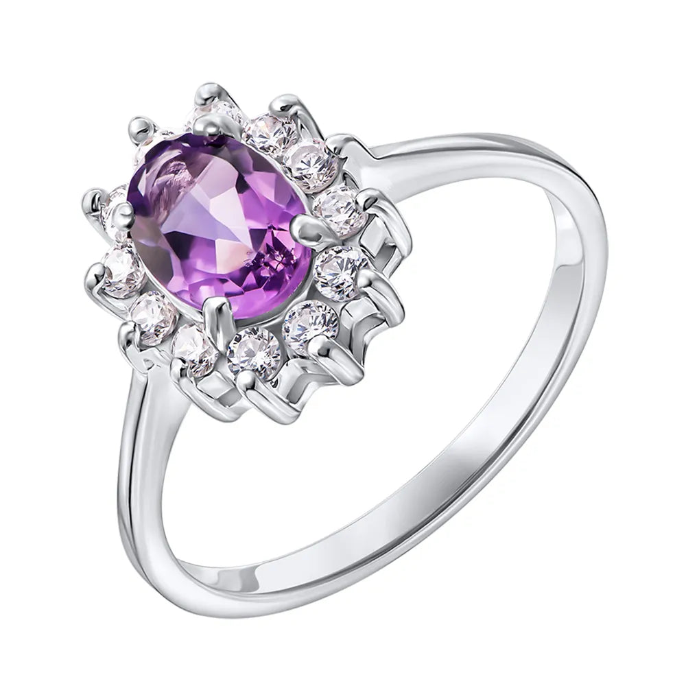 Каблучка зі срібла з аметистом і фіанітами R20-R/12/5134