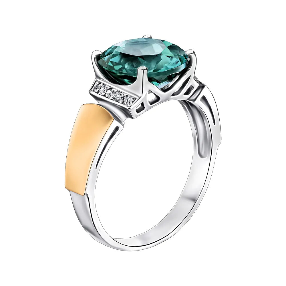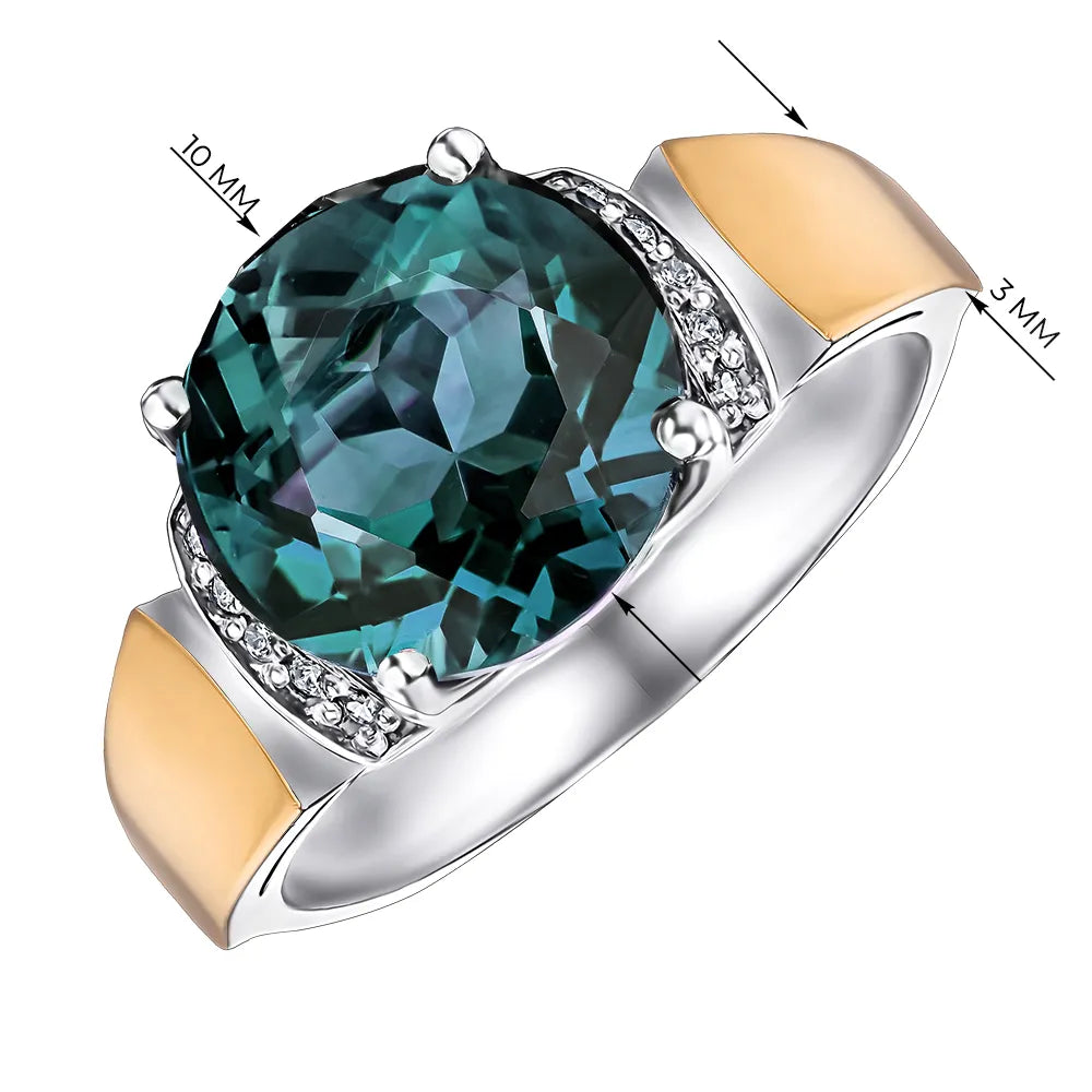 Каблучка зі срібла з золотими накладками із кварцом London blue та фіанітами 1433/1р-QLB