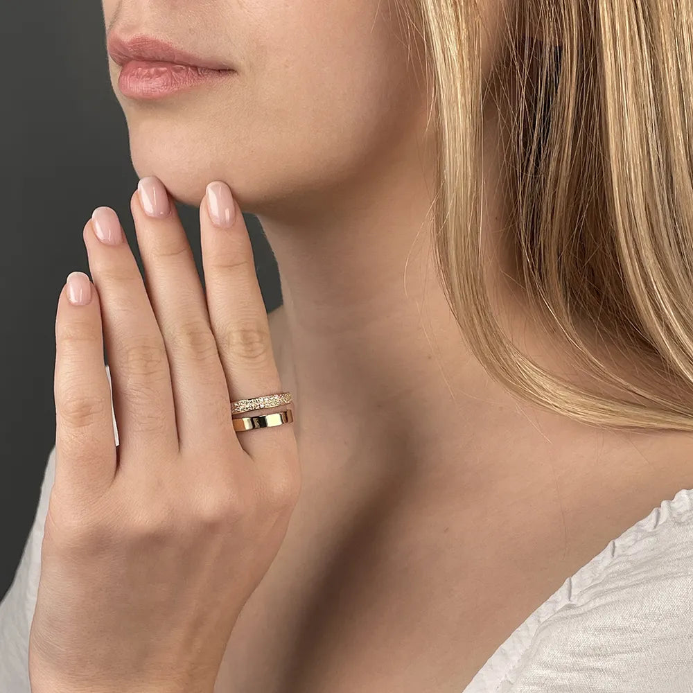 Золота каблучка 585 проби– це елегантна прикраса, що поєднує класичну розкіш з сучасним дизайном. Виготовлена з високоякісного червоного золота, вона має чудову міцність і здатна зберігати свій блиск на довгі роки. Вибір золотої каблучки стане не тільки символом вашого стилю, але й ознакою важливих моментів у житті, таких як заручини чи ювілей. Її елегантний вигляд і бездоганний дизайн роблять цю каблучку універсальним аксесуаром для будь-якої ситуації. Прикраса доповнена вставкою, що надає їй особливого шарму та витонченості.