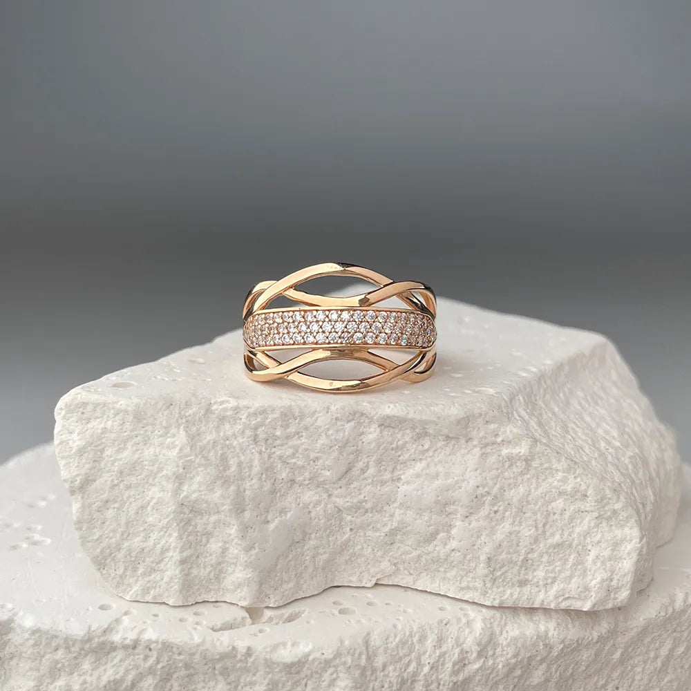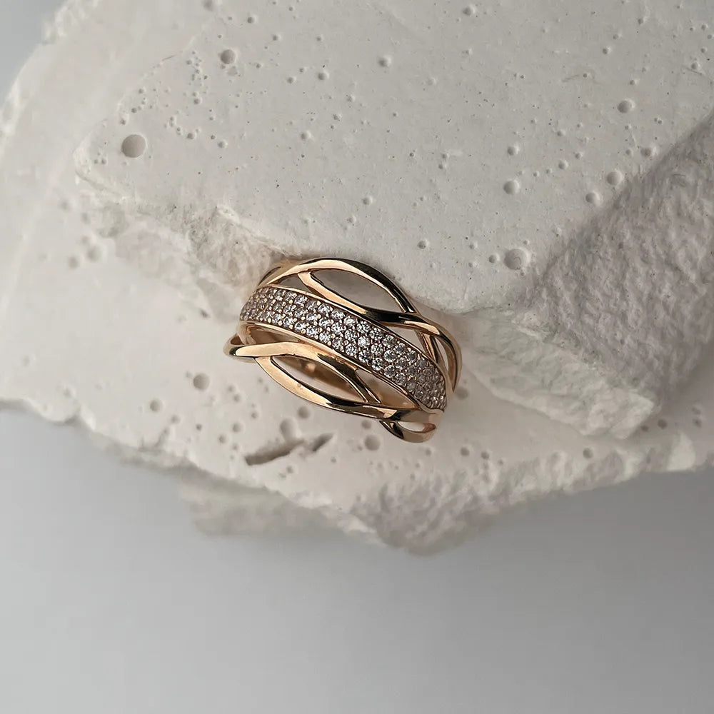 Каблучка із червоного золота з фіанітами S111561-R/01/1
