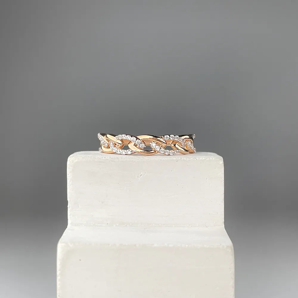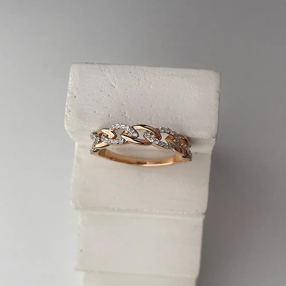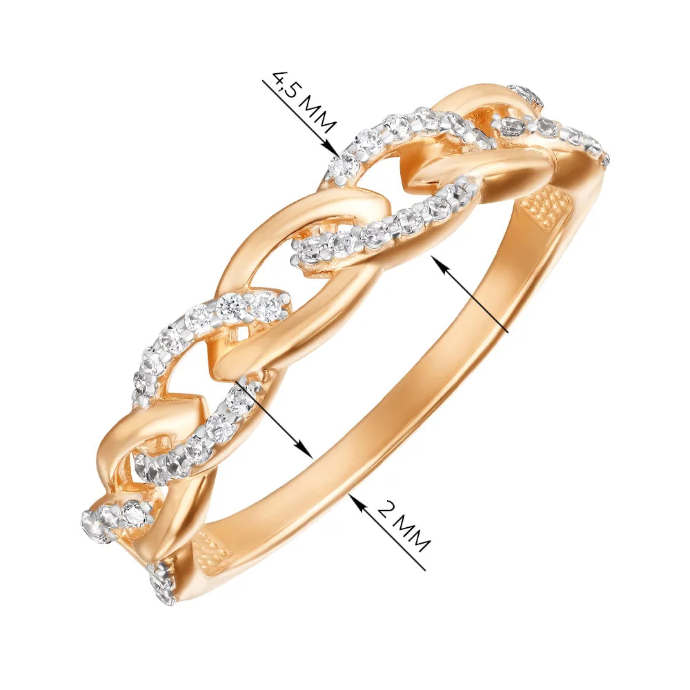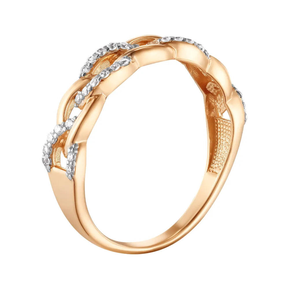 Каблучка із червоного золота з фіанітами та родієм 13740/01/1/1
