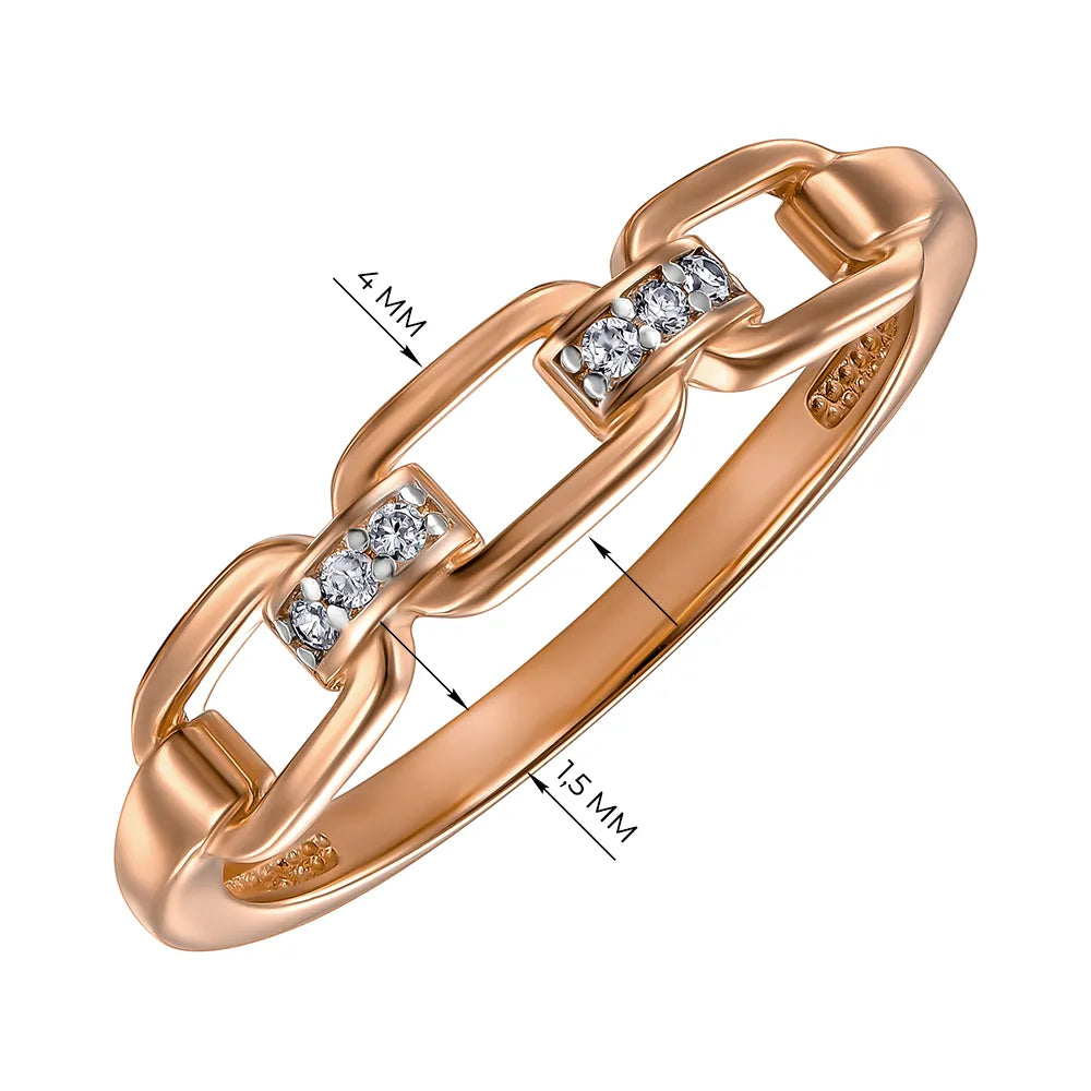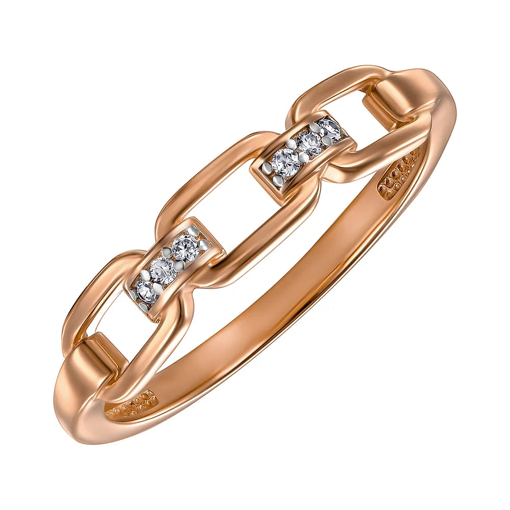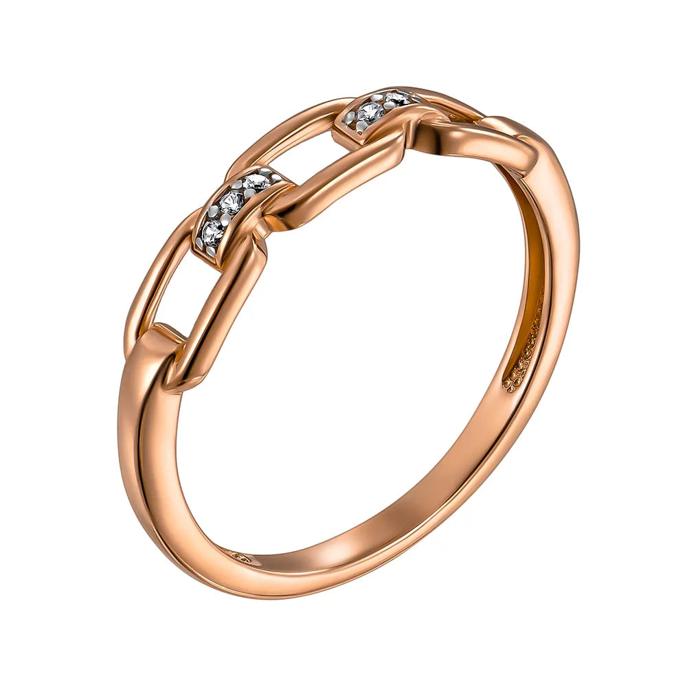 Каблучка із червоного золота з родованими крапанами та фіанітами 18334/01/1/1