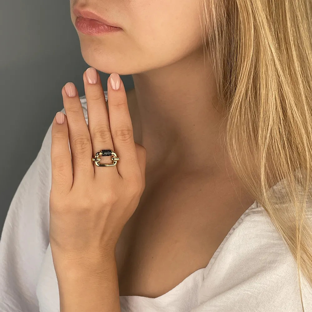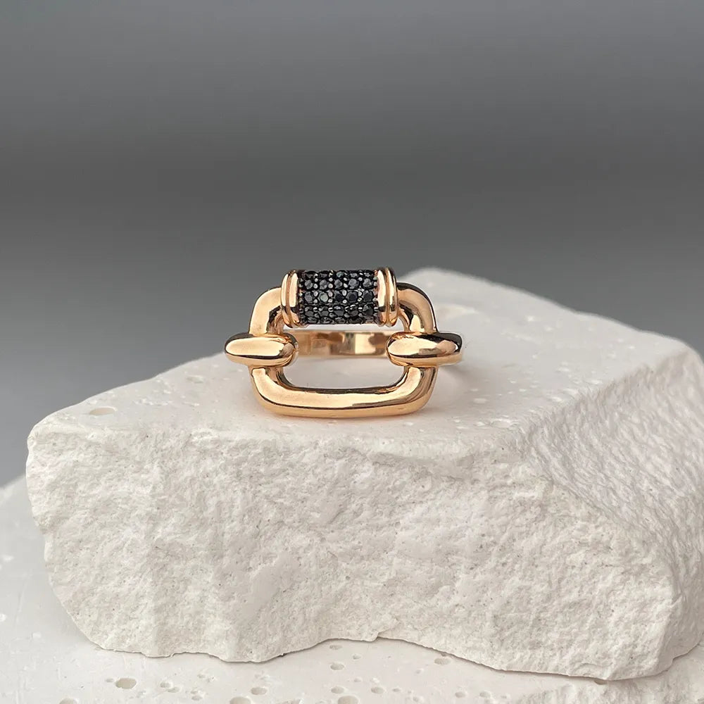 Каблучка з червоного золота з чорними фіанітами та чорним родієм G-981-R/01/526