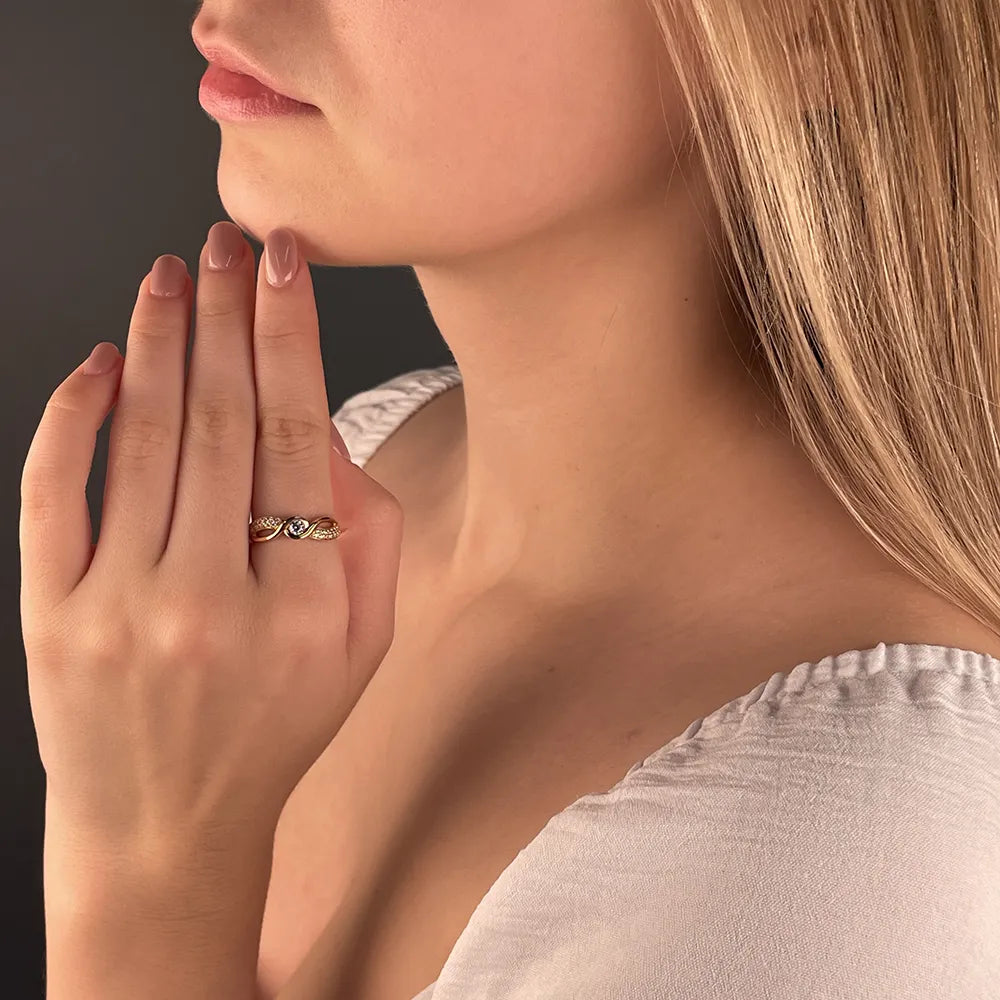 Золота каблучка 585 проби– це елегантна прикраса, що поєднує класичну розкіш з сучасним дизайном. Виготовлена з високоякісного червоного золота, вона має чудову міцність і здатна зберігати свій блиск на довгі роки. Вибір золотої каблучки стане не тільки символом вашого стилю, але й ознакою важливих моментів у житті, таких як заручини чи ювілей. Її елегантний вигляд і бездоганний дизайн роблять цю каблучку універсальним аксесуаром для будь-якої ситуації. Прикраса доповнена вставкою, що надає їй особливого шарму та витонченості.