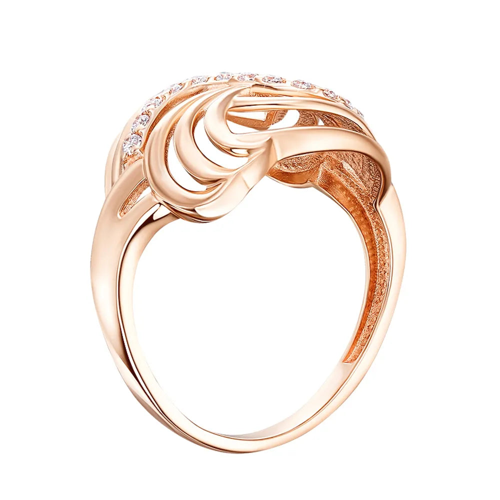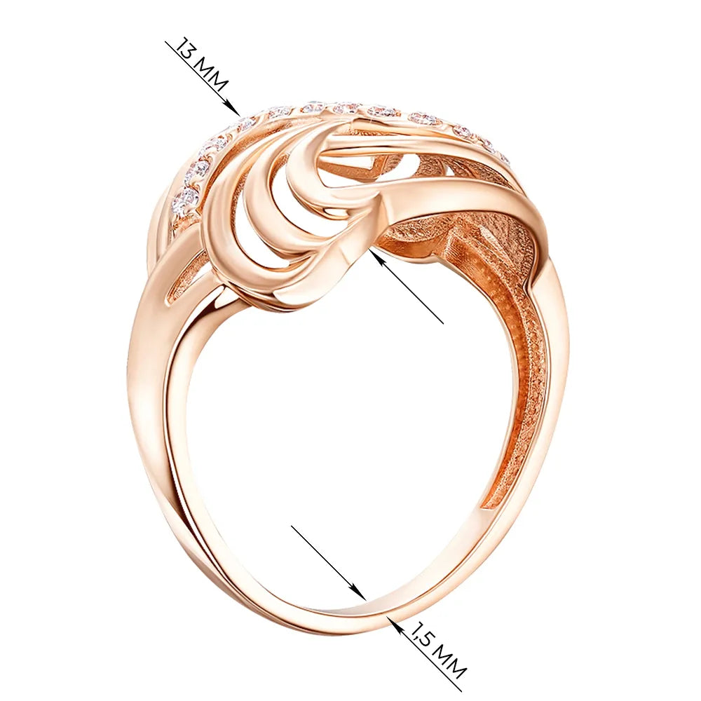 Каблучка з червоного золота з фіанітами 13547/01/0/13