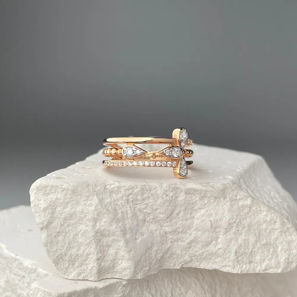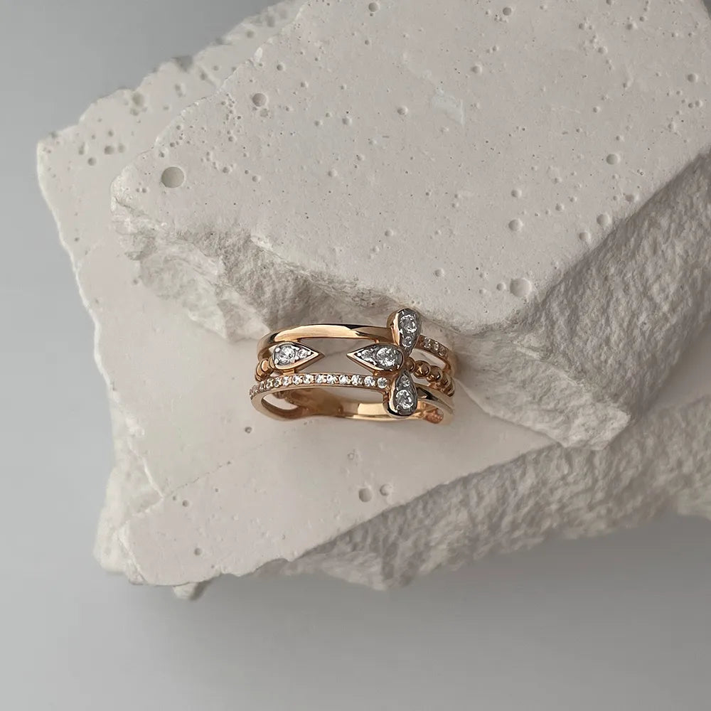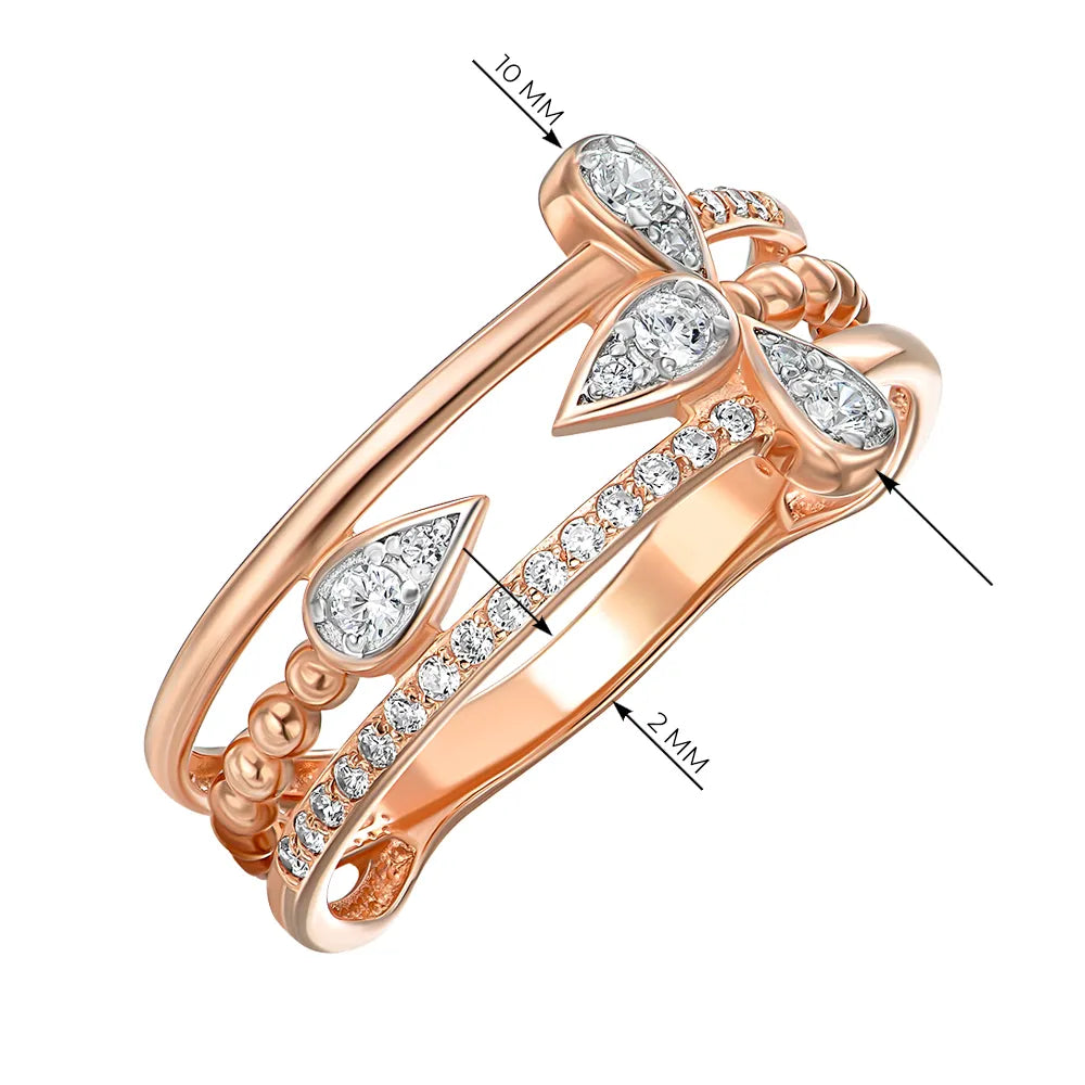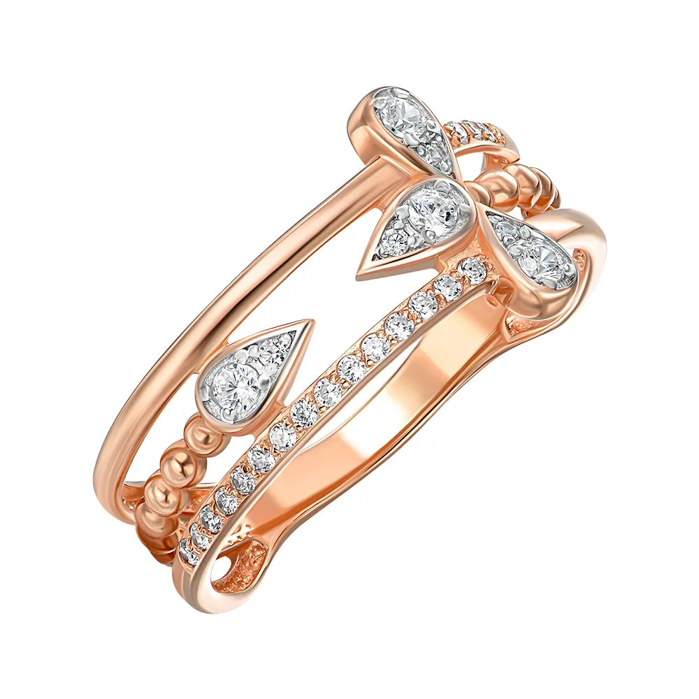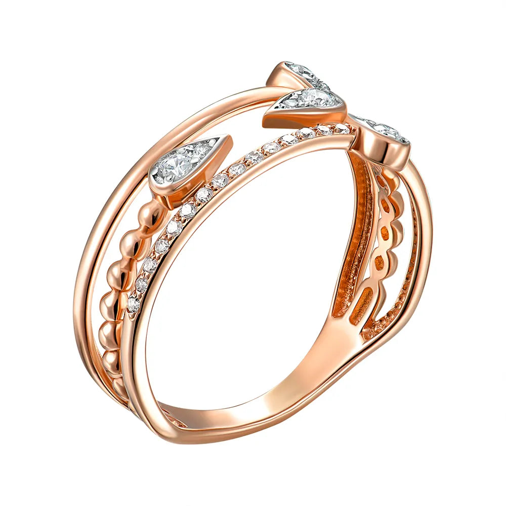 Каблучка з червоного золота з фіанітами 18099/01/1/73