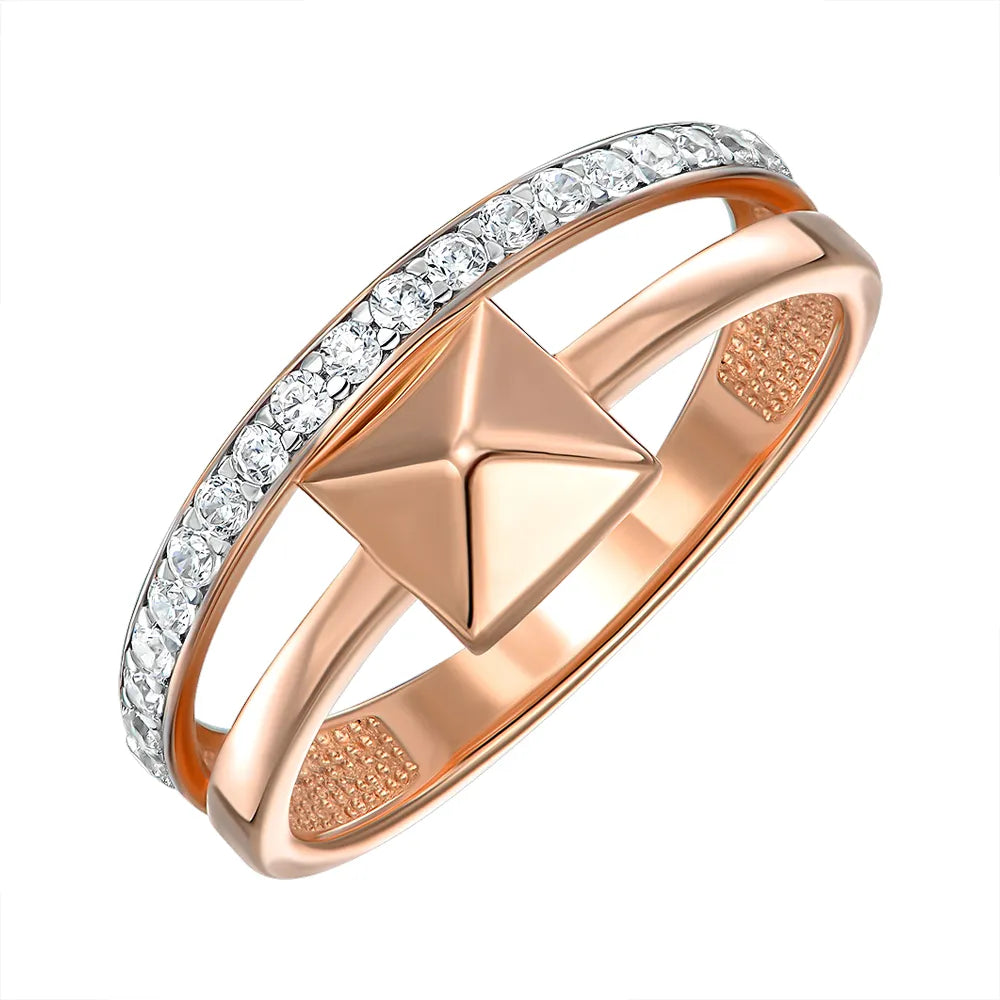 Каблучка з червоного золота з фіанітами 18137/01/1/13