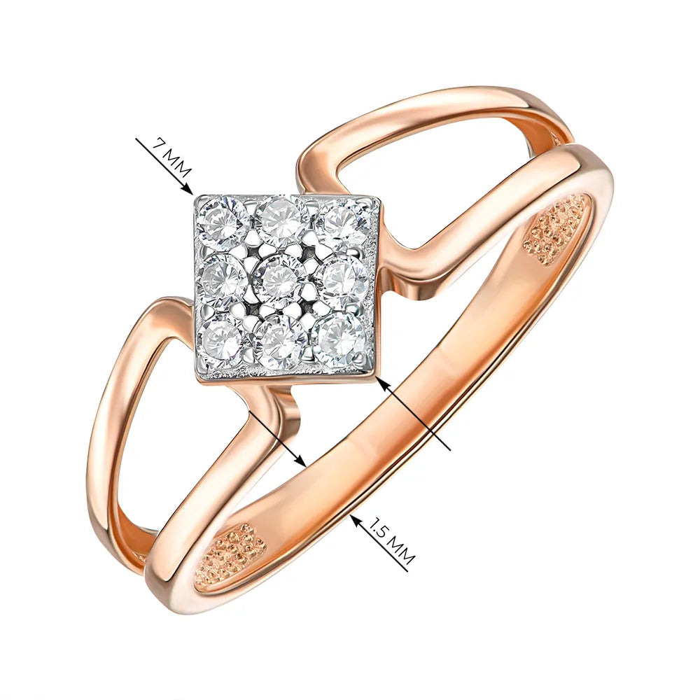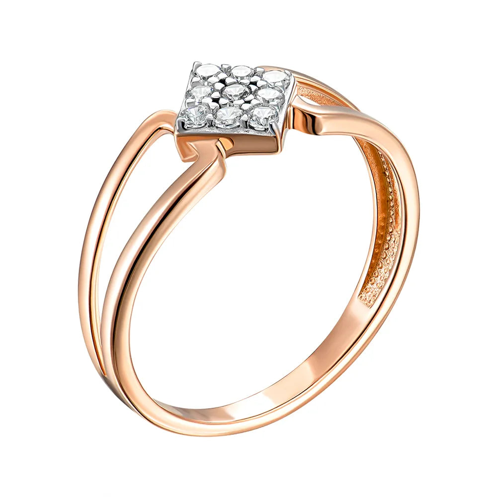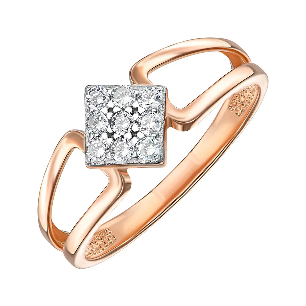 Каблучка з червоного золота з фіанітами 18208/01/1/3