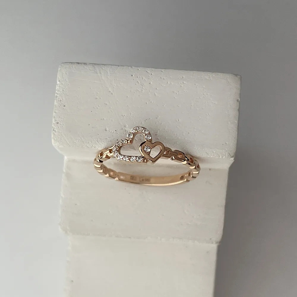 Каблучка з червоного золота з фіанітами 18670/01/0/323