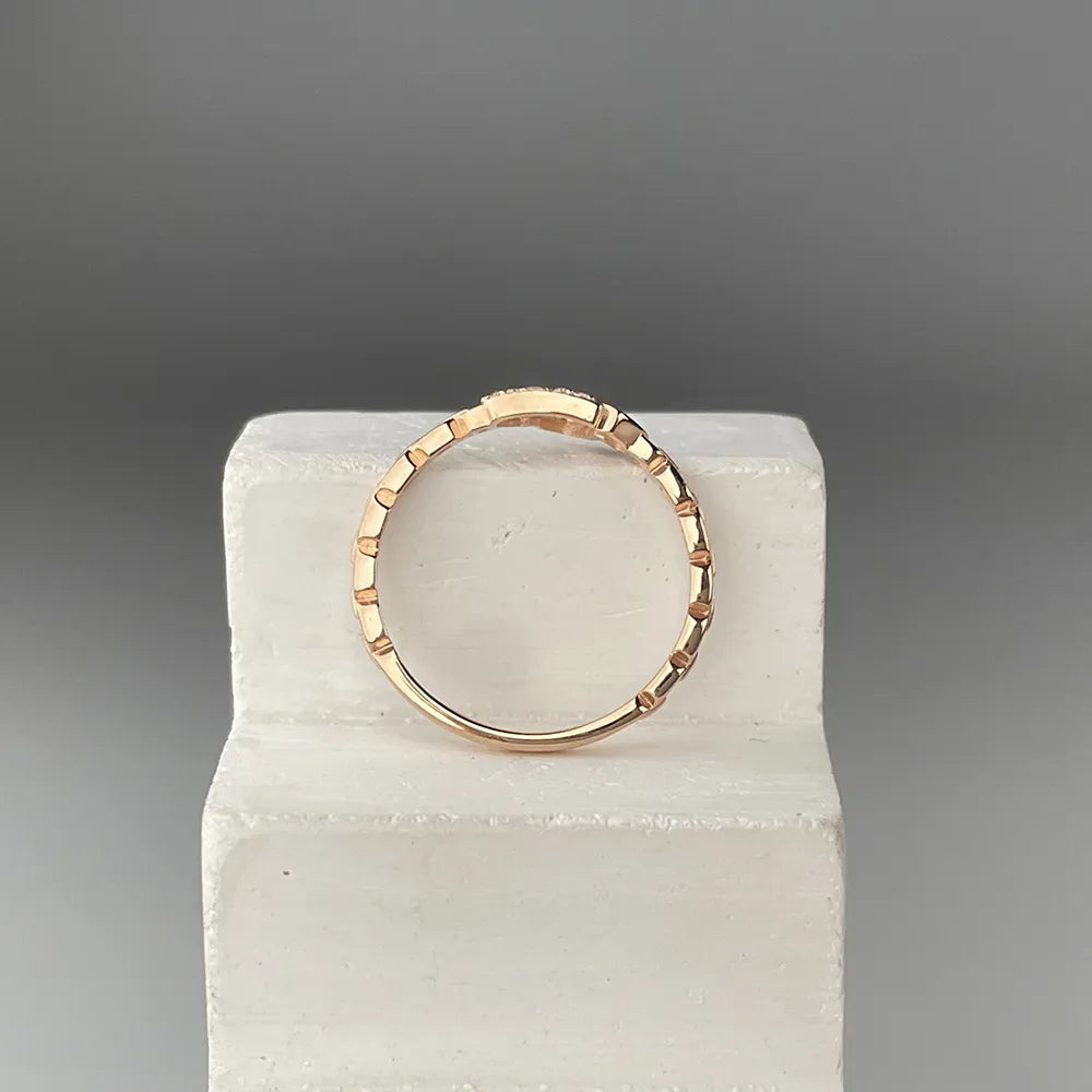 Золота каблучка 585 проби– це елегантна прикраса, що поєднує класичну розкіш з сучасним дизайном. Виготовлена з високоякісного червоного золота, вона має чудову міцність і здатна зберігати свій блиск на довгі роки. Вибір золотої каблучки стане не тільки символом вашого стилю, але й ознакою важливих моментів у житті, таких як заручини чи ювілей. Її елегантний вигляд і бездоганний дизайн роблять цю каблучку універсальним аксесуаром для будь-якої ситуації. Прикраса доповнена вставкою, що надає їй особливого шарму та витонченості.