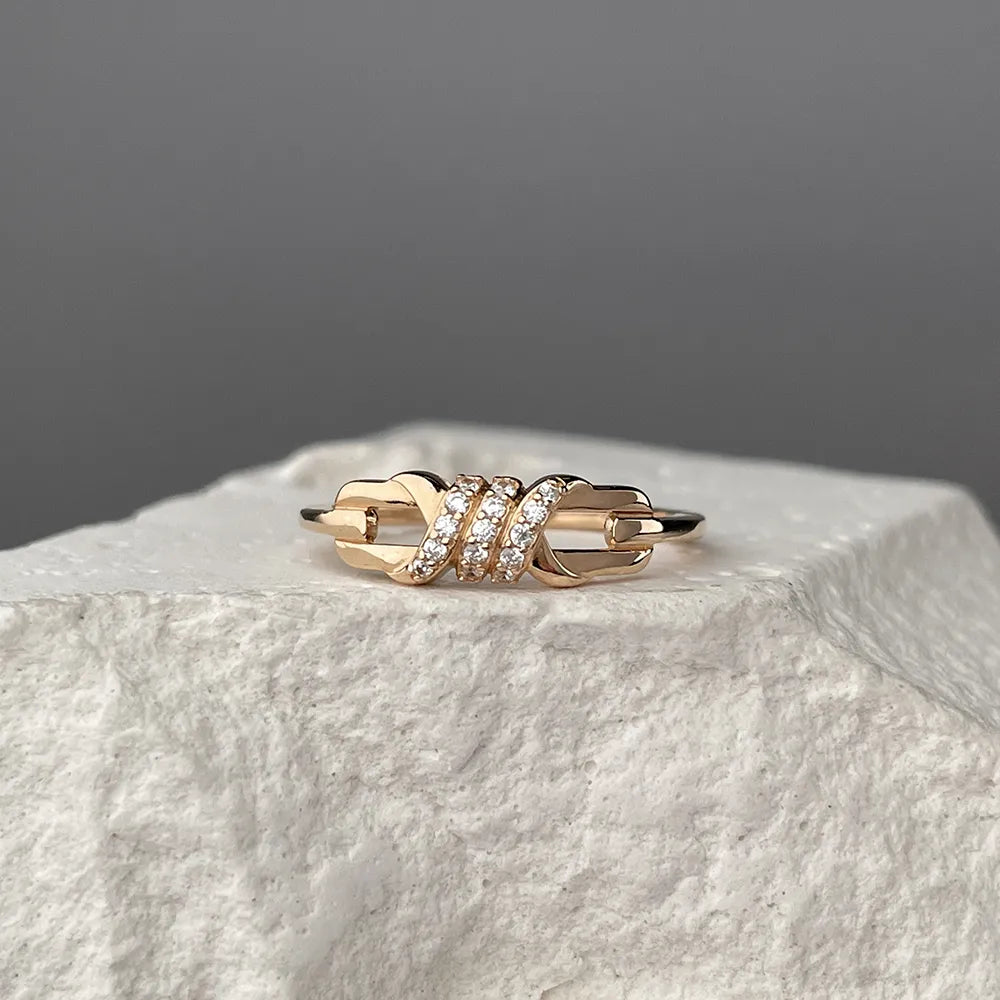 Каблучка з червоного золота з фіанітами 18961/01/0/323