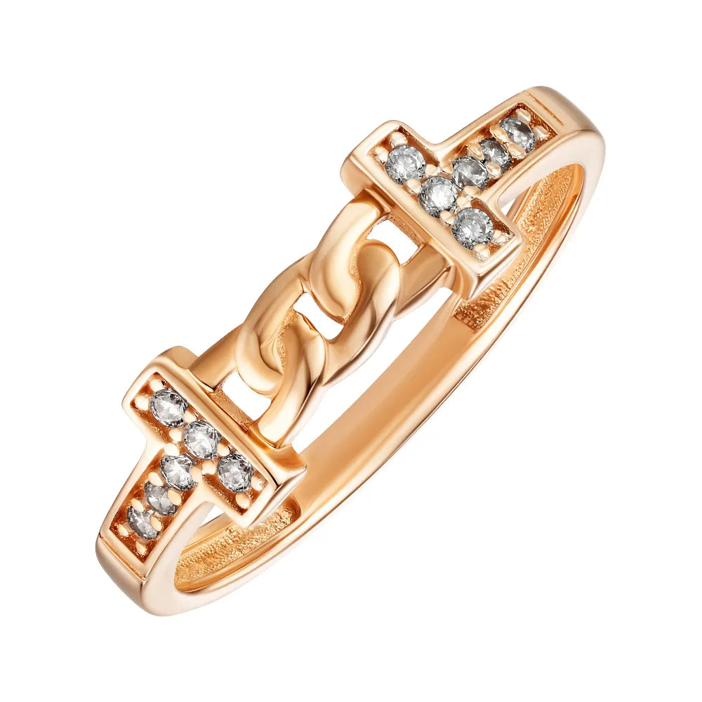 Каблучка з червоного золота з фіанітами P-1258-R/01/1