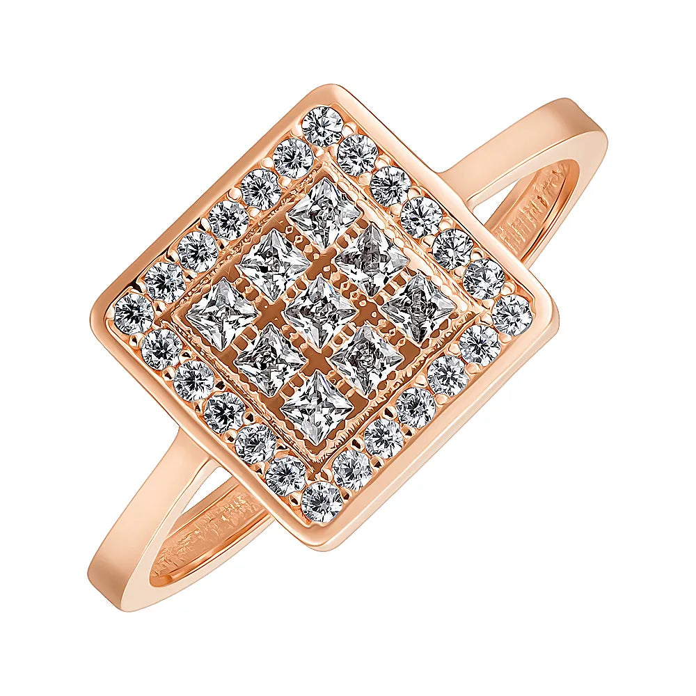Каблучка з червоного золота з фіанітами P-1771-R/01/1