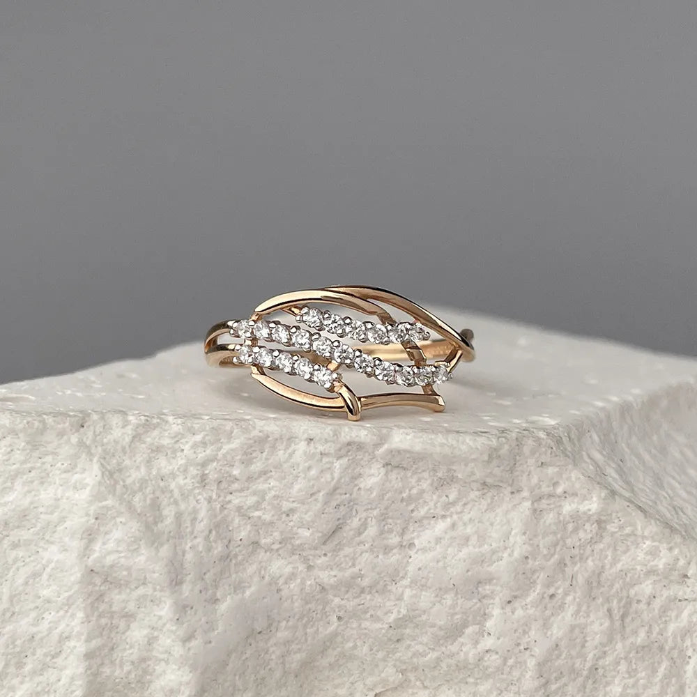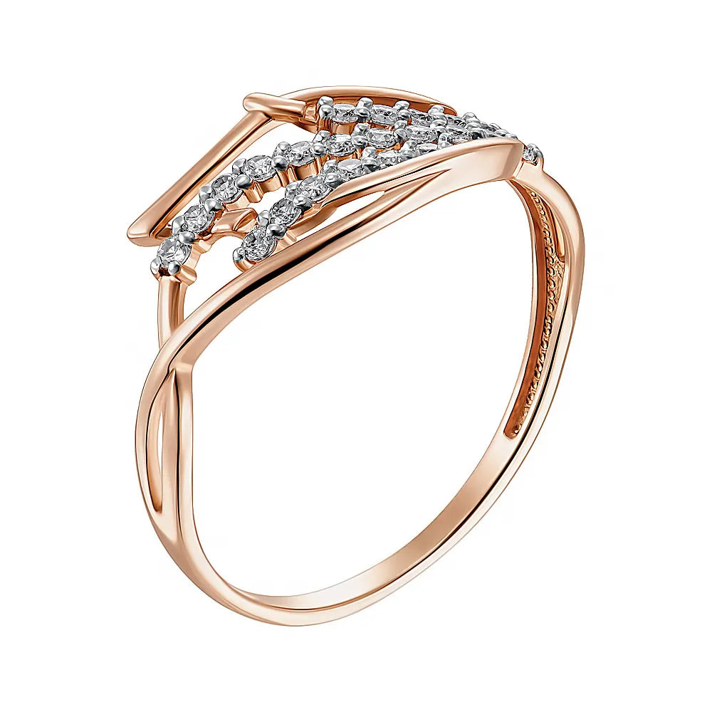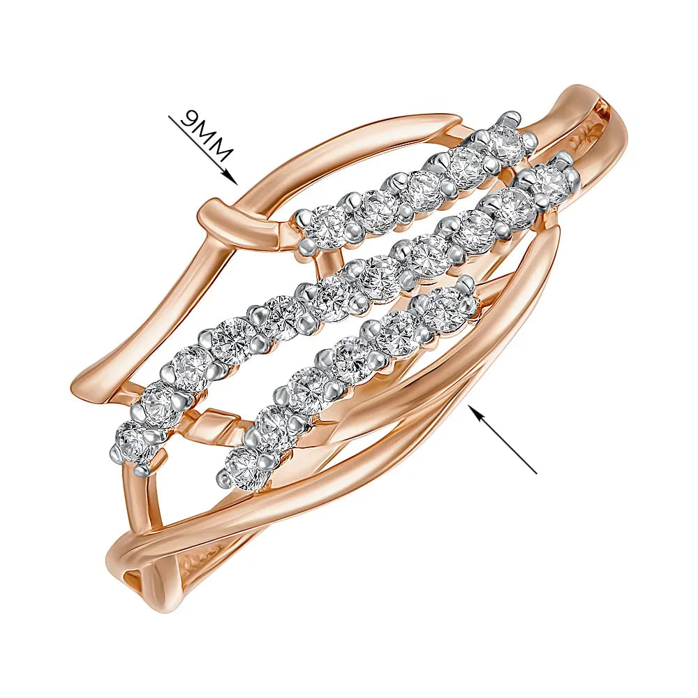 Каблучка з червоного золота з фіанітами та родіюванням 13580/01/1/13