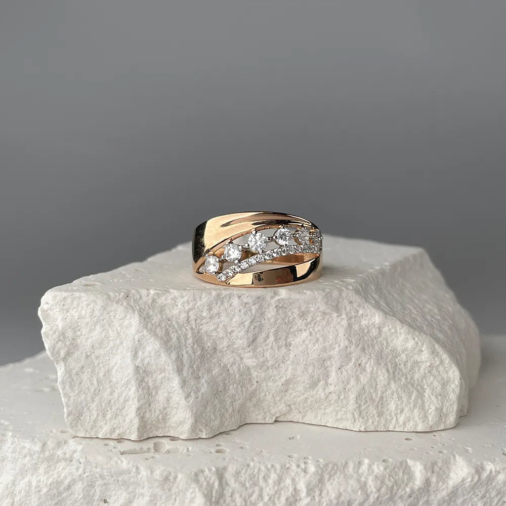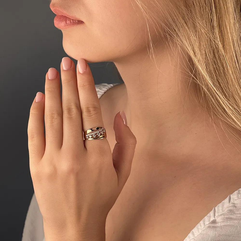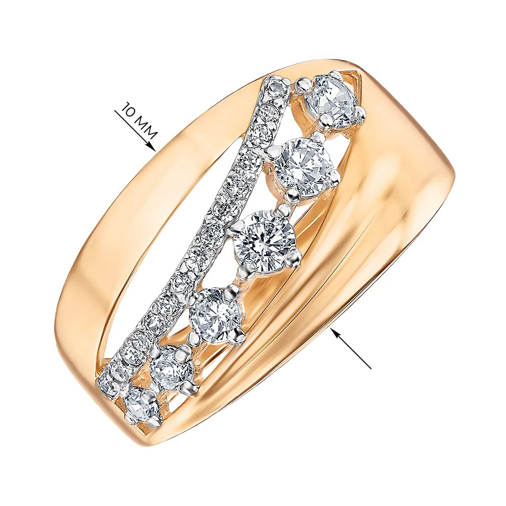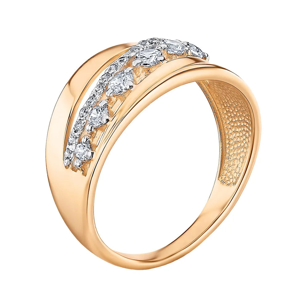 Каблучка з червоного золота з фіанітами та родіюванням 13635/01/1/2776