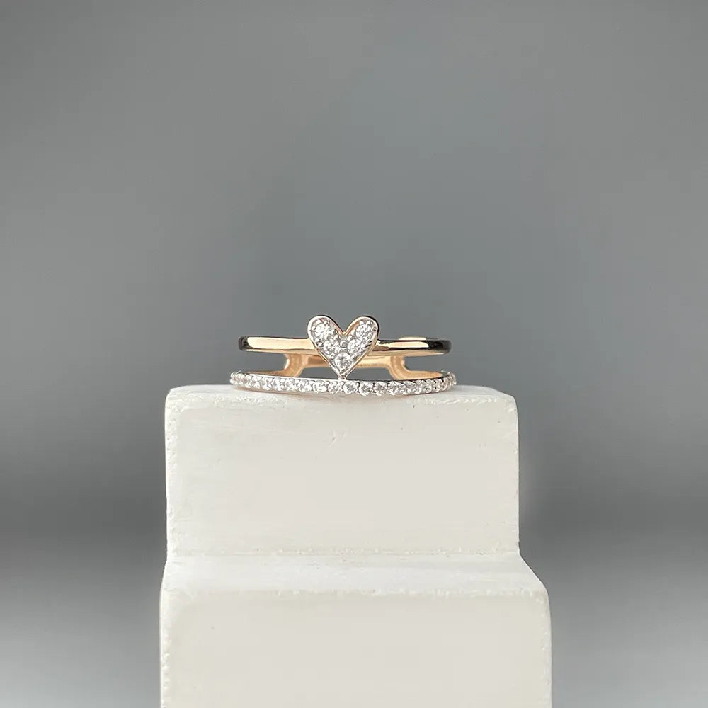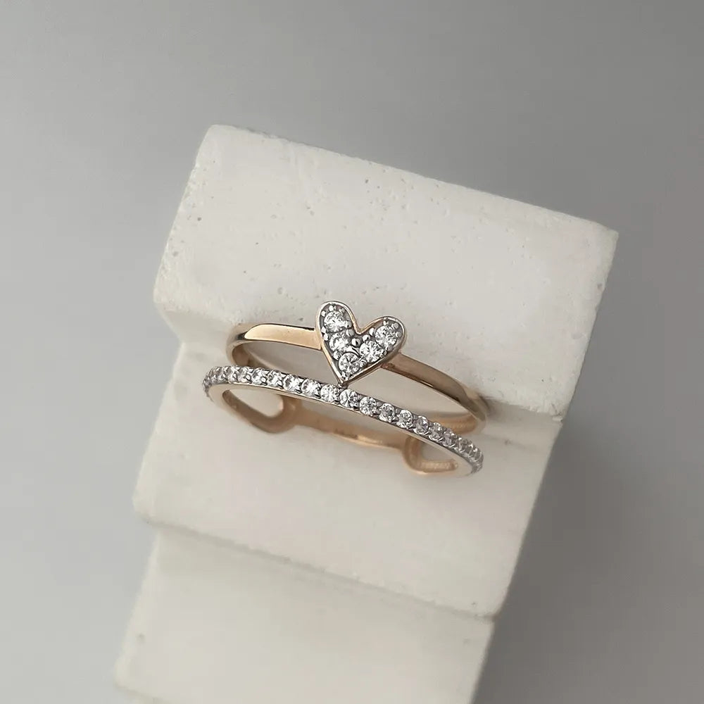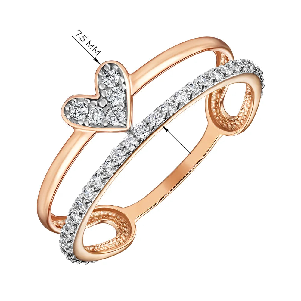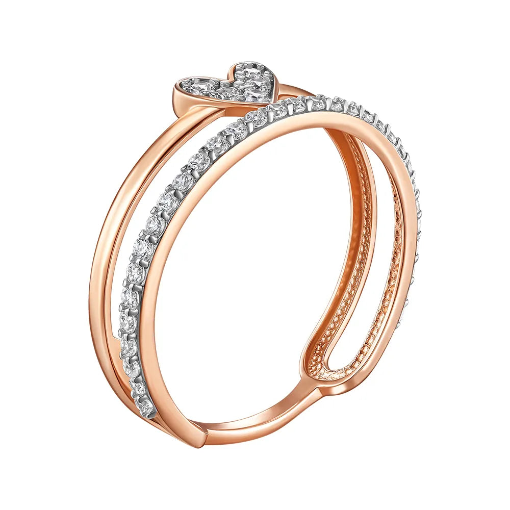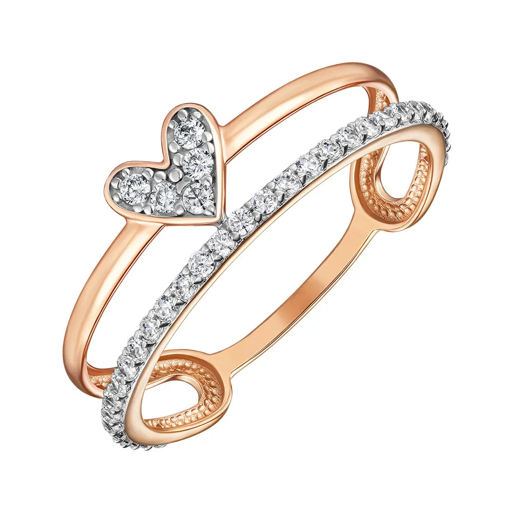 Каблучка з червоного золота з фіанітами та родіюванням 18451/01/1/43