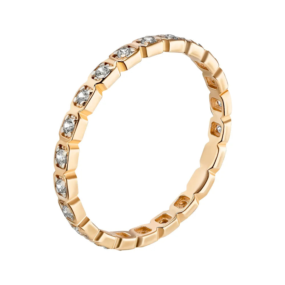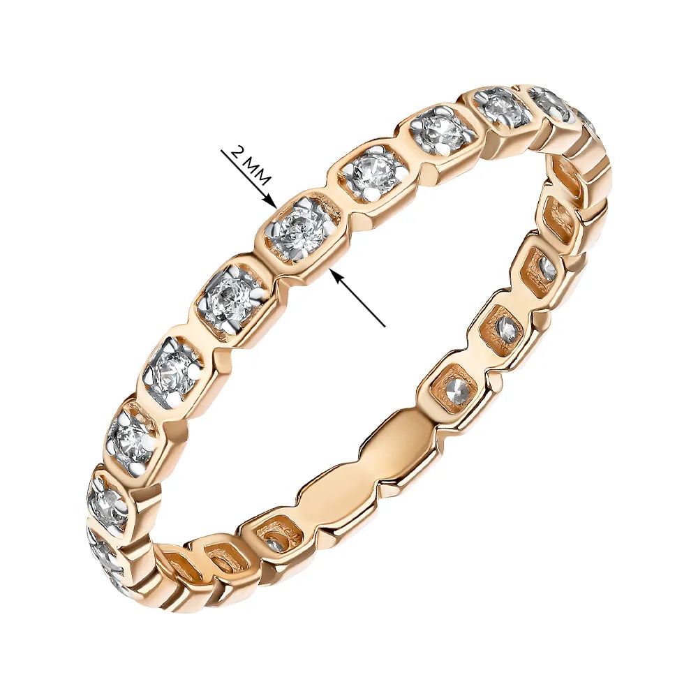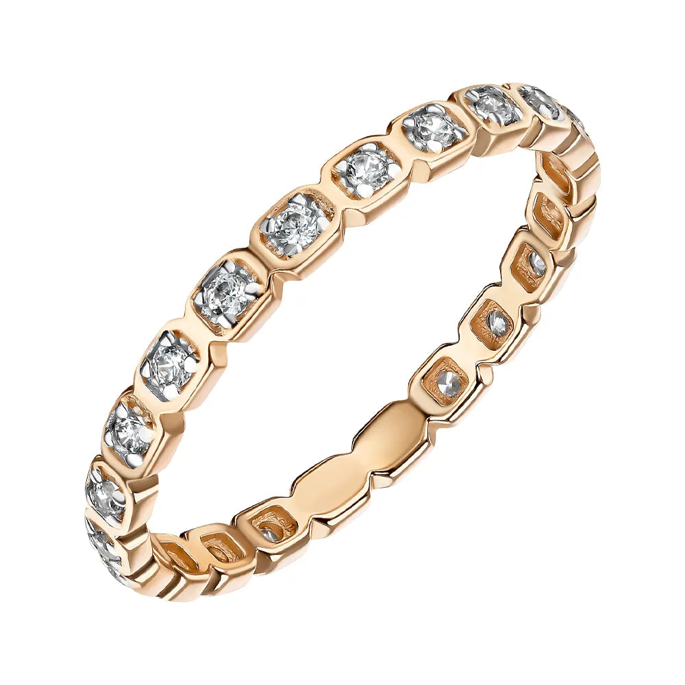 Каблучка з червоного золота з фіанітами та родіюванням 18660/01/1/13