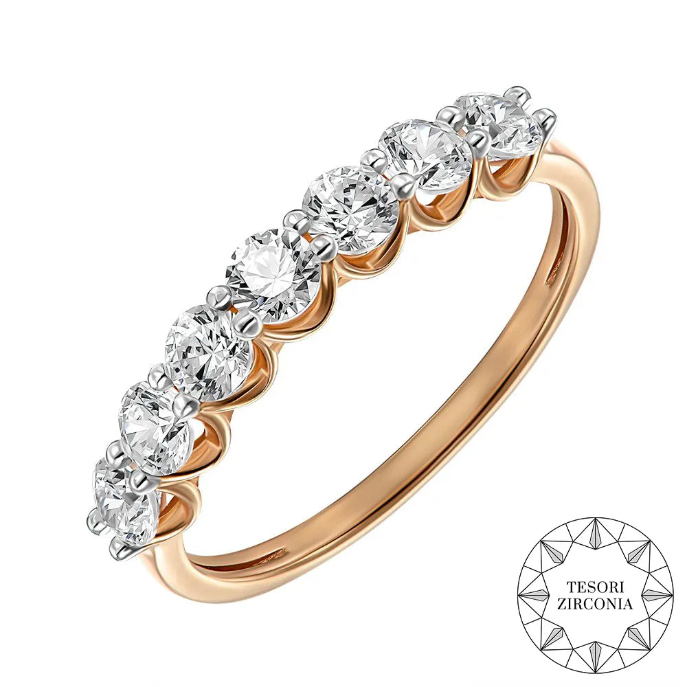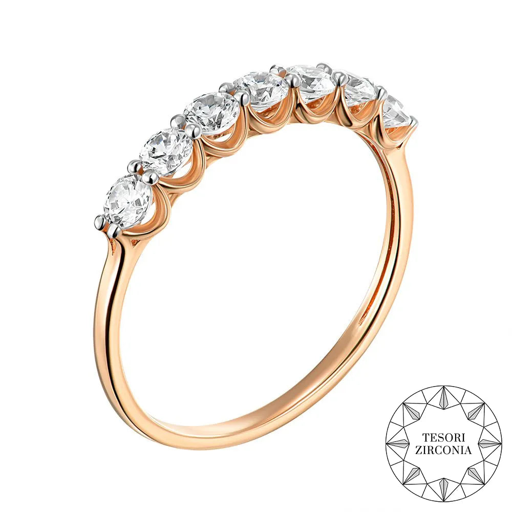 Каблучка з червоного золота з фіанітами Tesori Zirconia та родованими крапанами 13399/01/1/4035