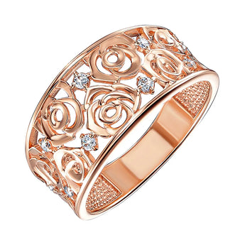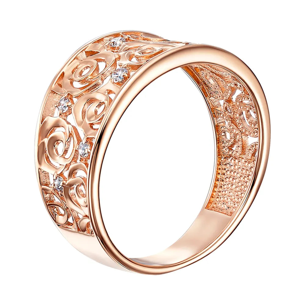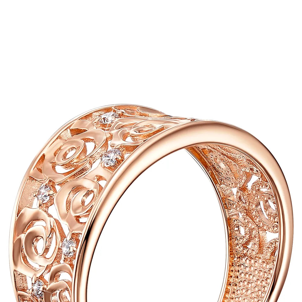 Каблучка з червоного золота з фіанітом 13387/01/0/43