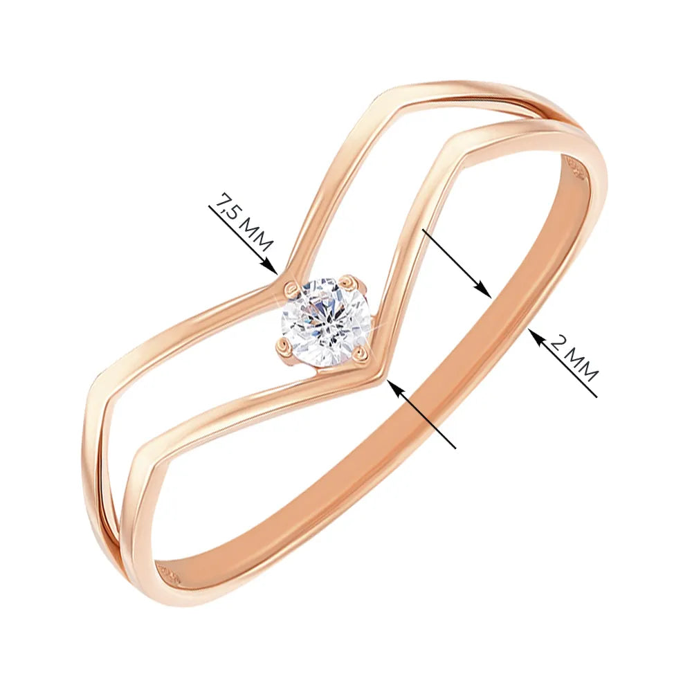 Каблучка з червоного золота з фіанітом 13764/01/0/28