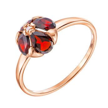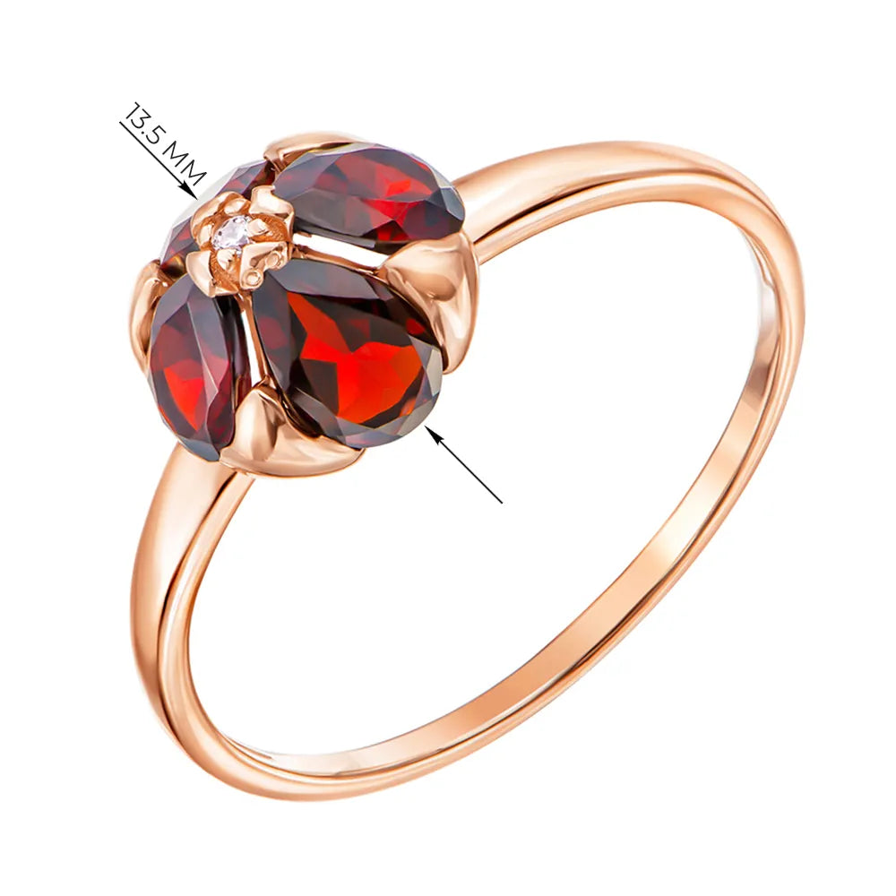 Каблучка з червоного золота з гранатами та фіанітом 530370/01/0/7104