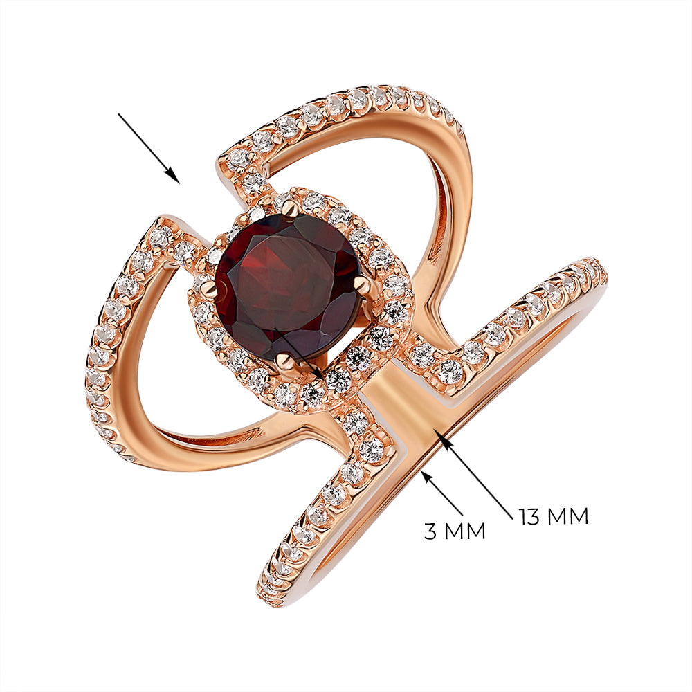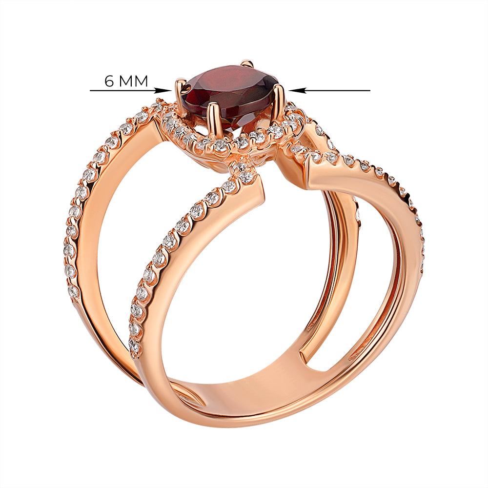 Каблучка з червоного золота з гранатом 530305/01/0/5093