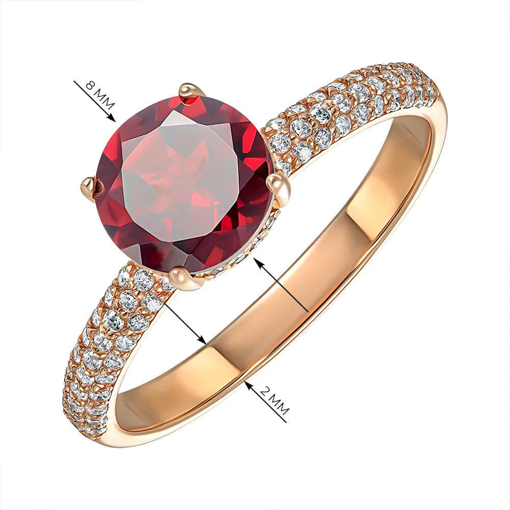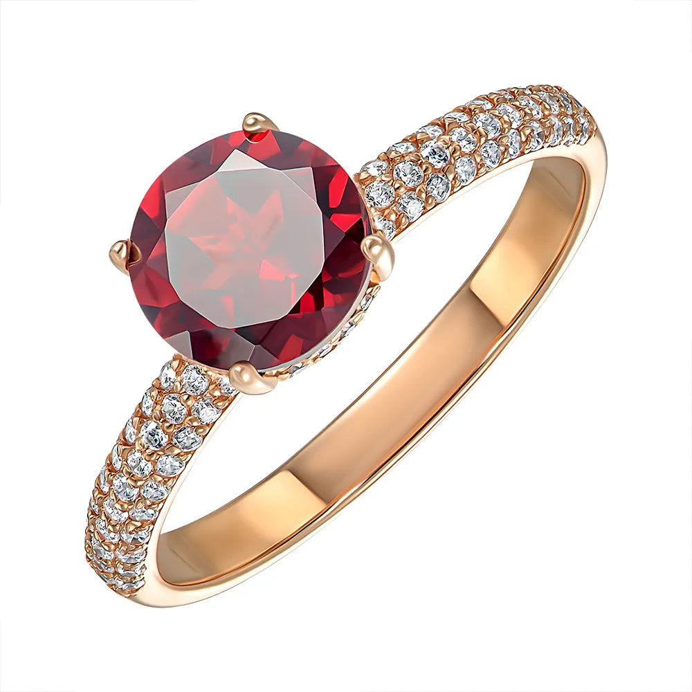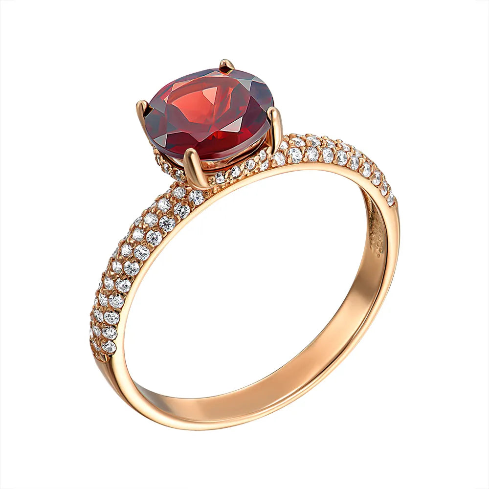 Каблучка з червоного золота з гранатом та фіанітами 530396/01/0/7281