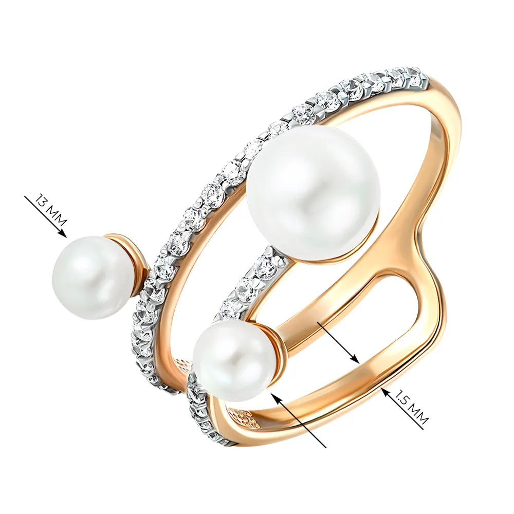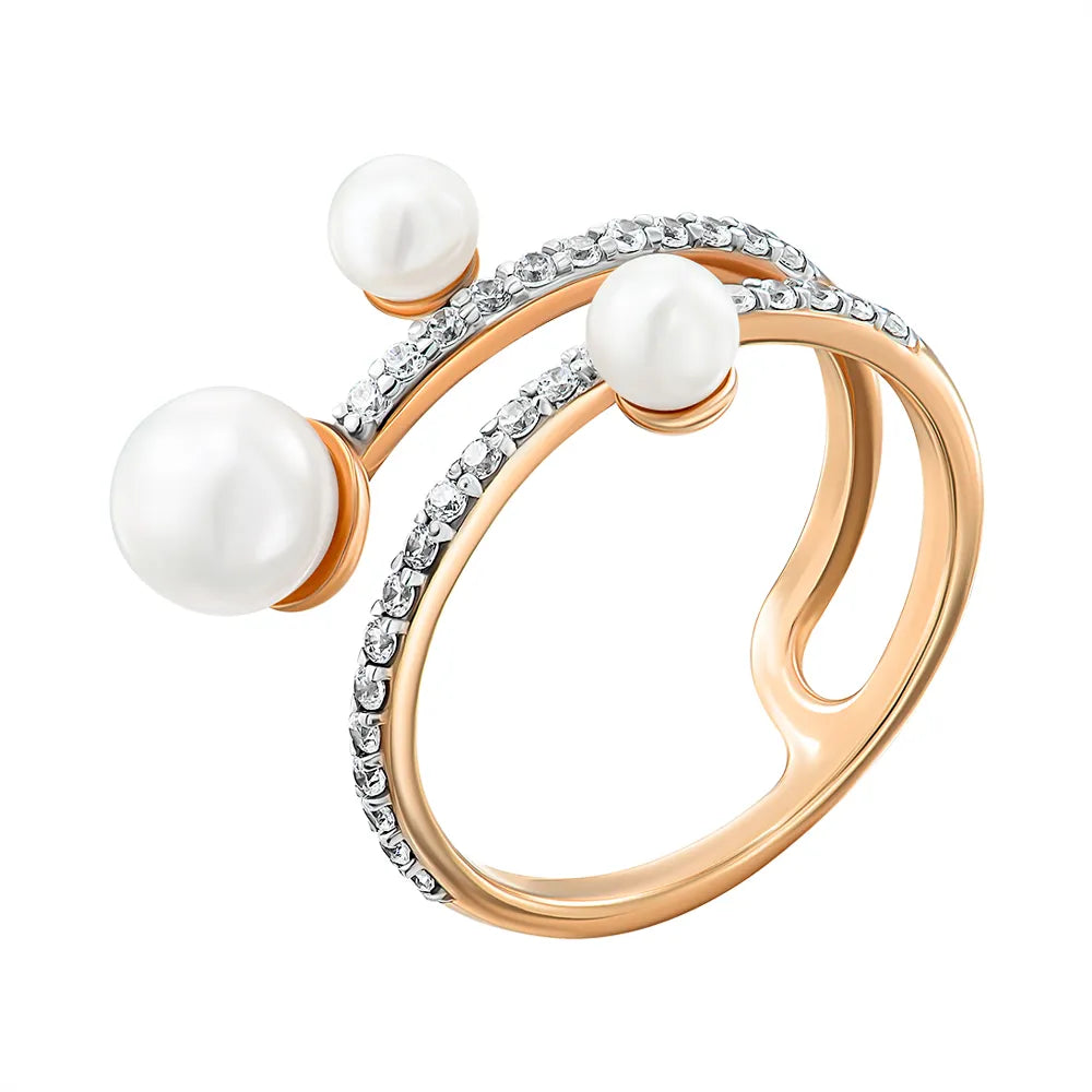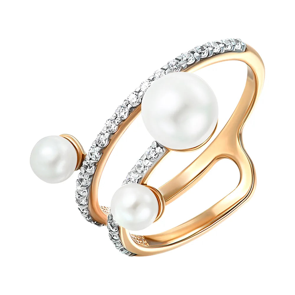 Каблучка з червоного золота з перлами та фіанітами 13221/01/1/2375