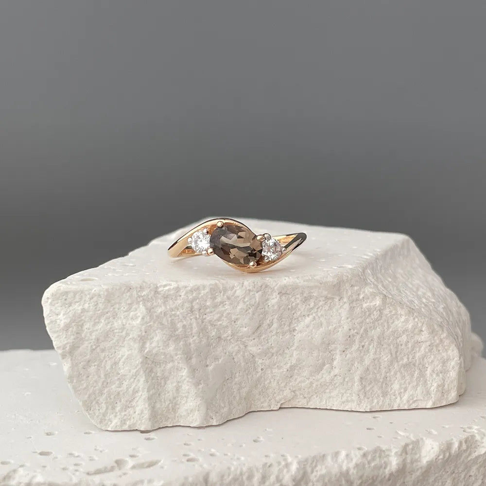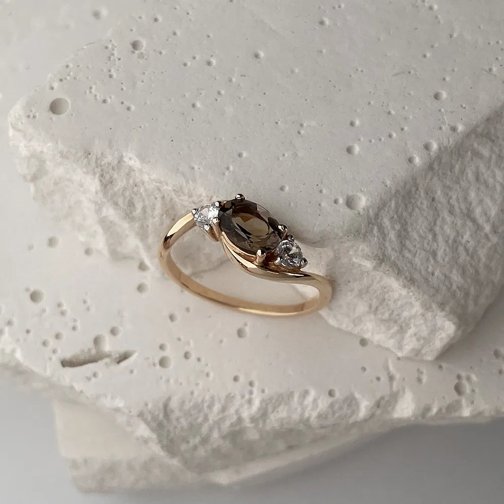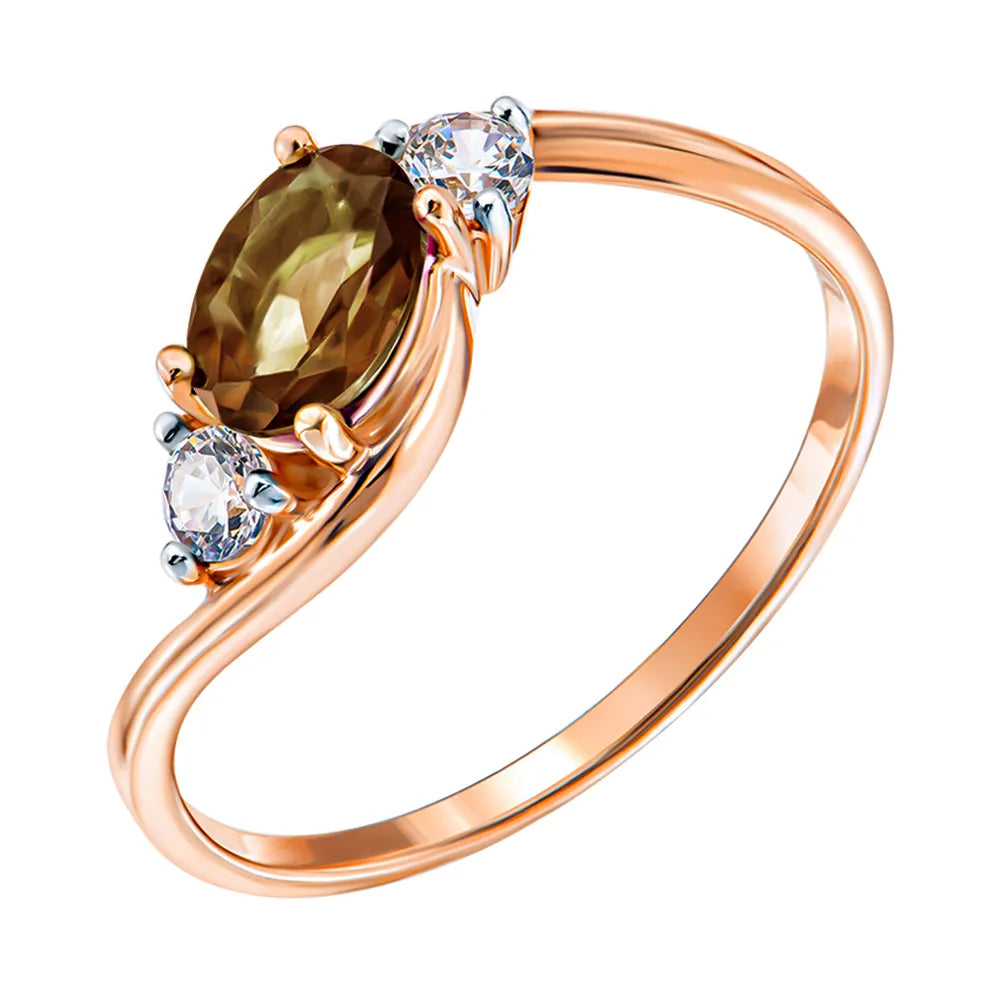 Каблучка з червоного золота з раухтопазом і фіанітами 530283/01/1/6619