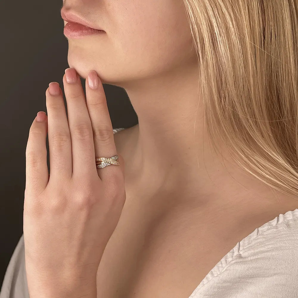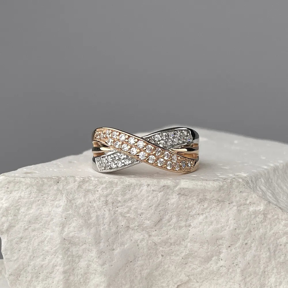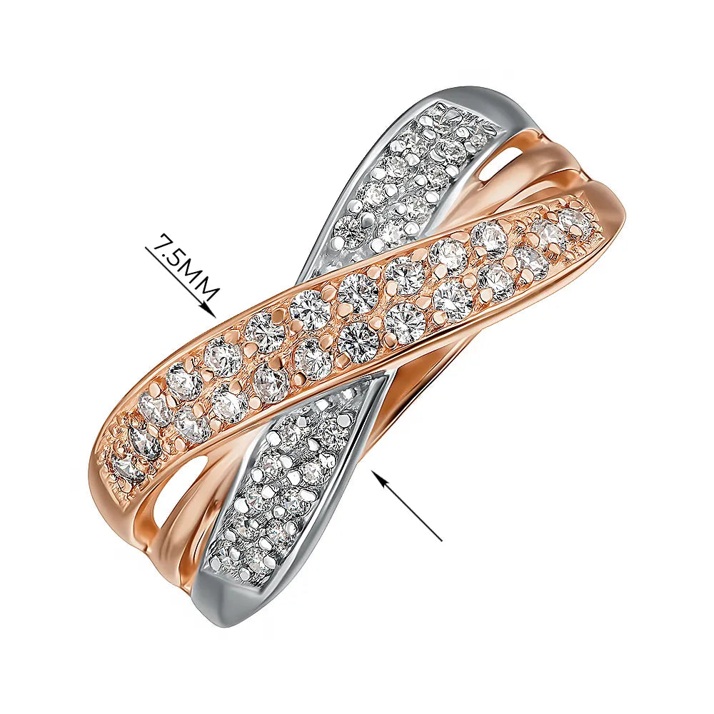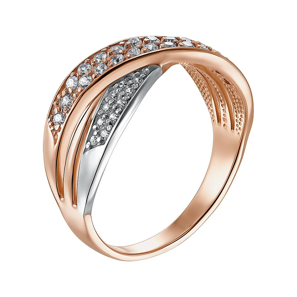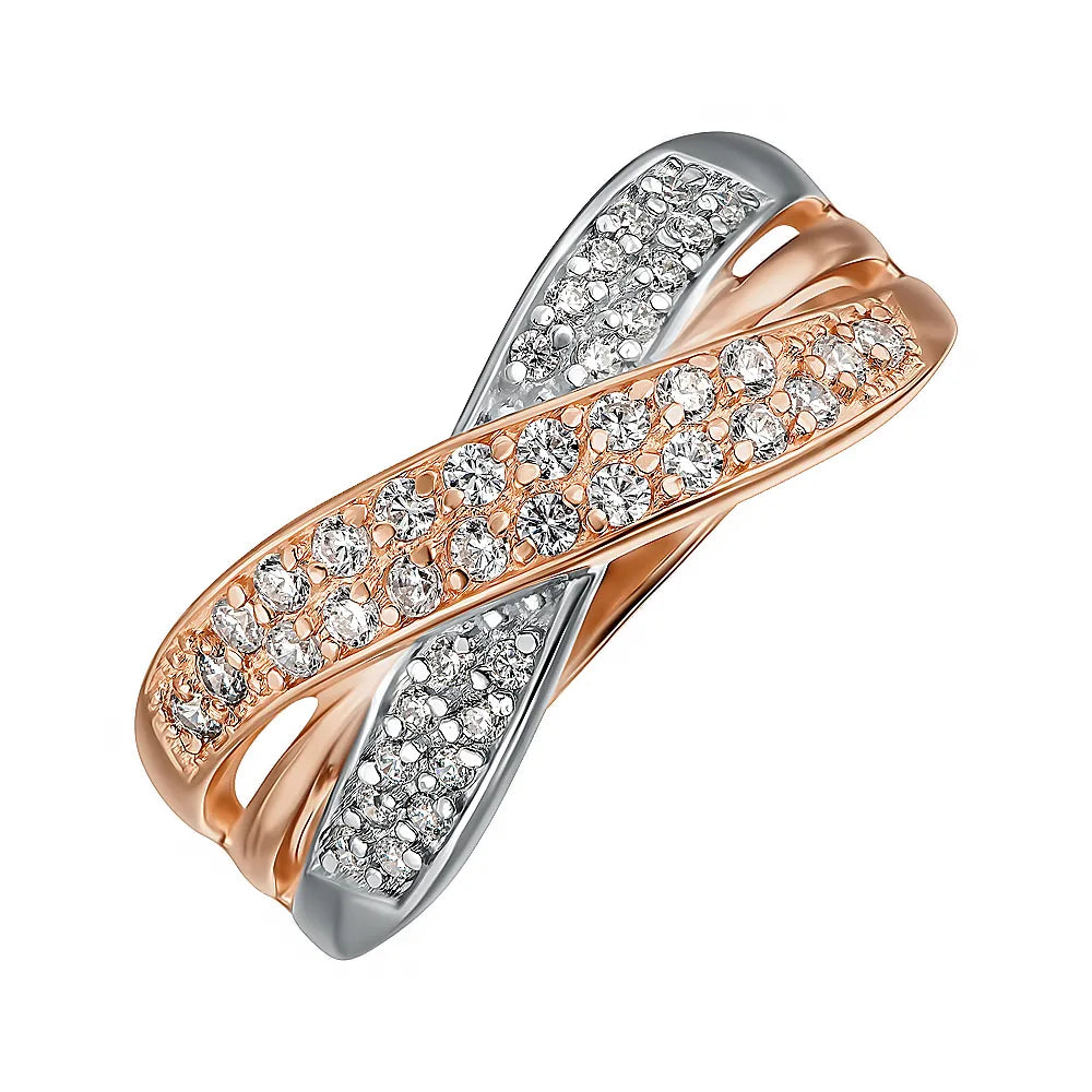 Каблучка з комбінованого золота з фіанітами 12056 с