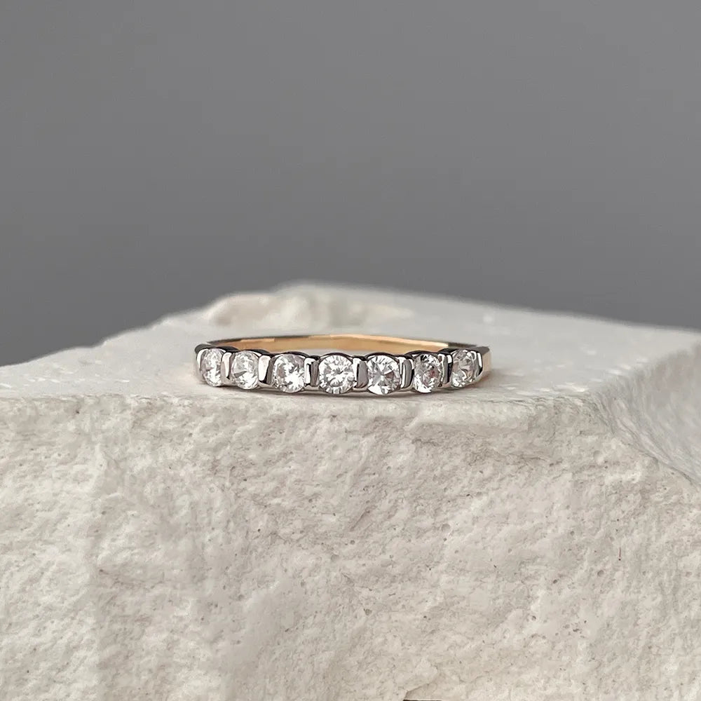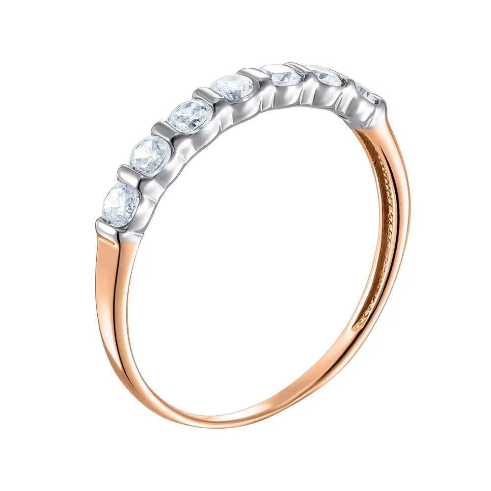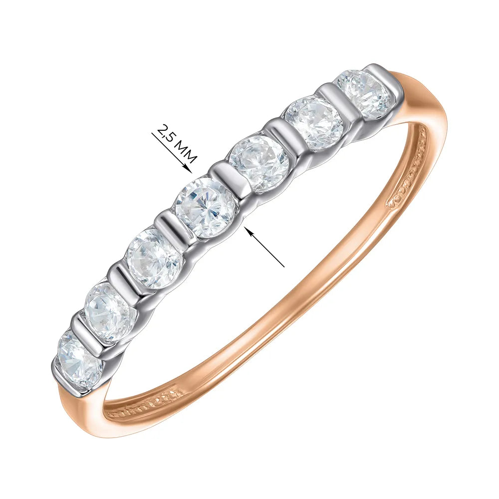 Переваги прикрасиФіаніти, використані в кільці, відрізняються чудовим огранюванням і чистотою, створюючи чудову гру світла. Завдяки родієвому покриттю прикраса надовго збереже свій первісний блиск та міцність. Комбінація двох відтінків золота робить обручку універсальною прикрасою, яка легко впишеться в будь-яку ювелірну колекцію і підійде до різних стилів одягу.