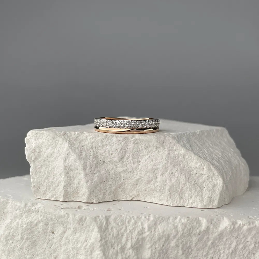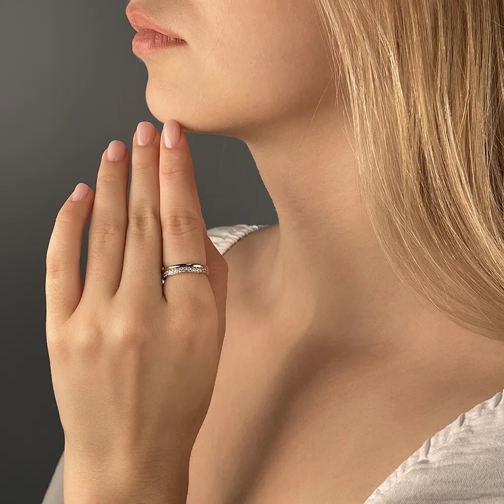 Каблучка з комбінованого золота з фіанітами 13151/01/1/1
