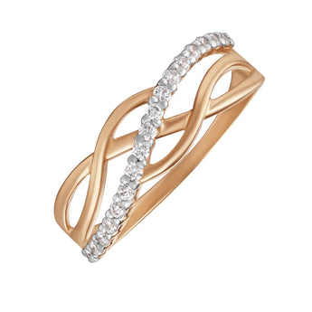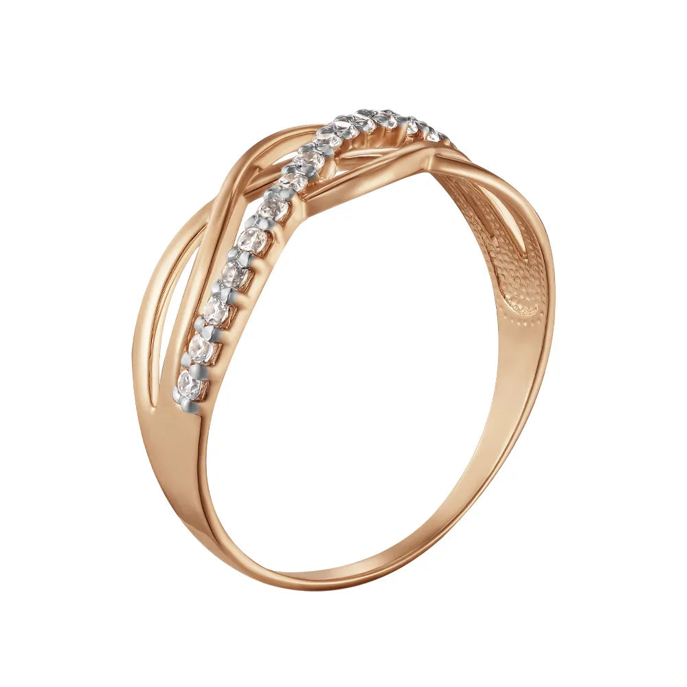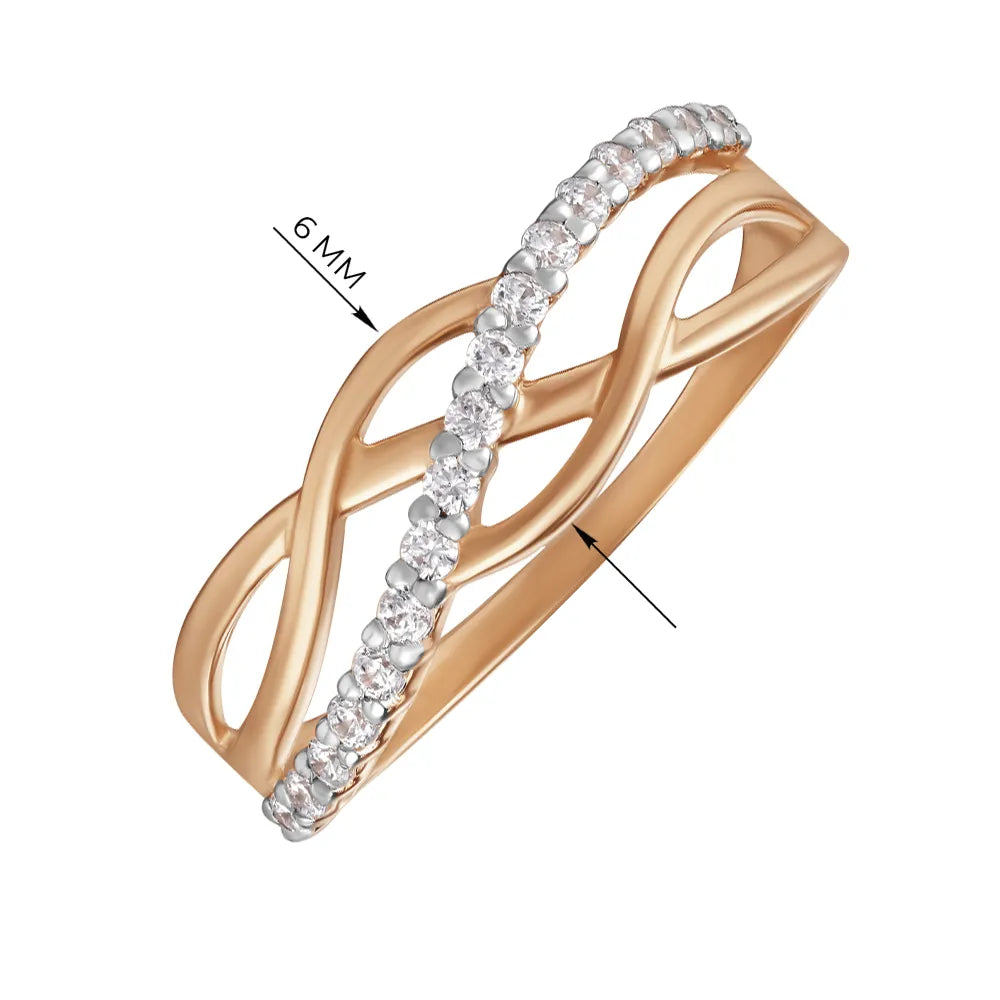 Каблучка з комбінованого золота з фіанітами 13763/01/1/13