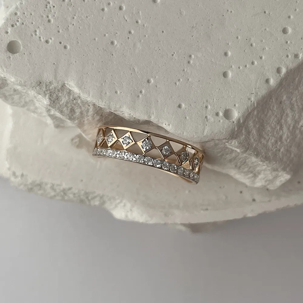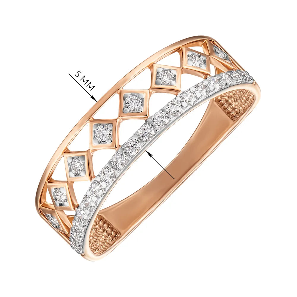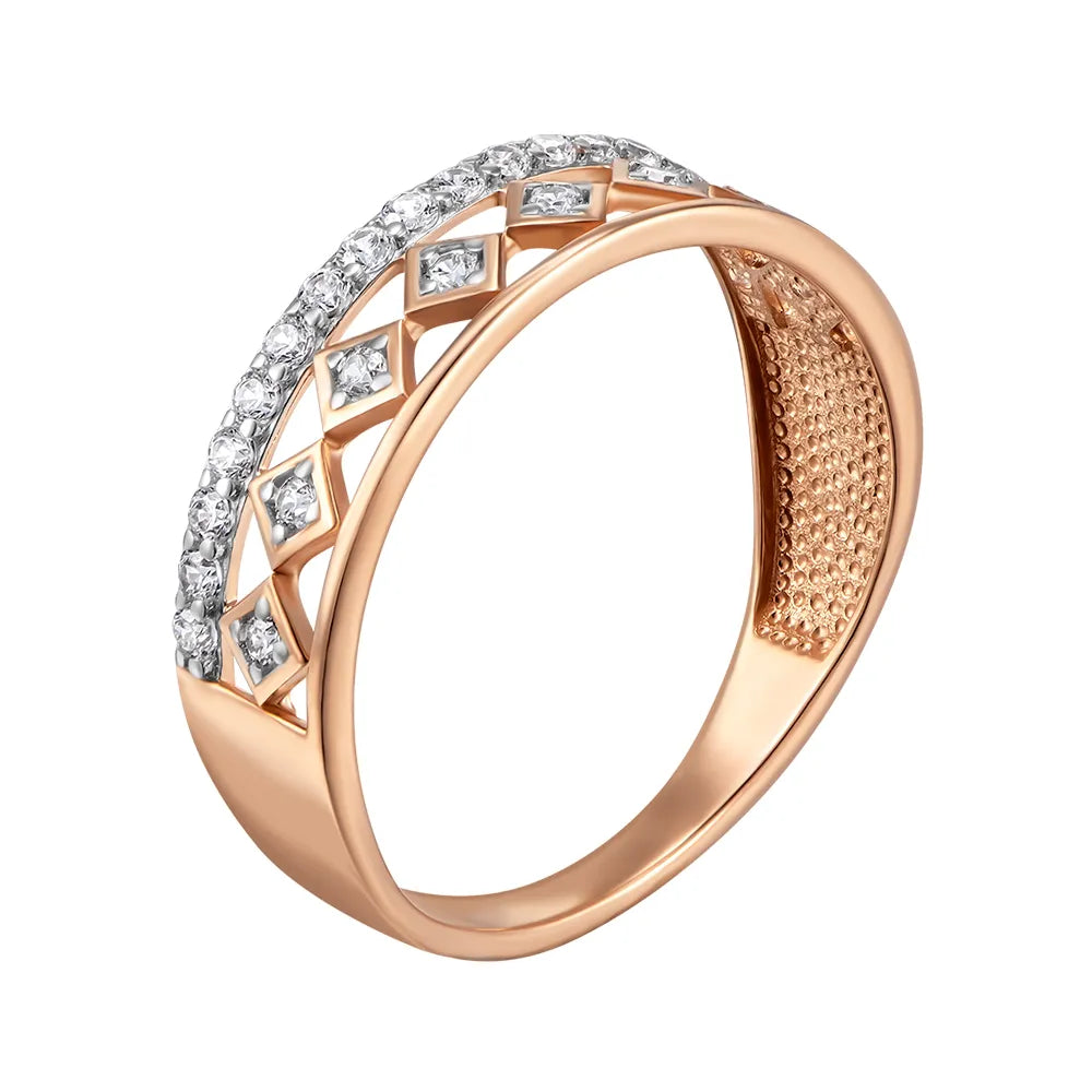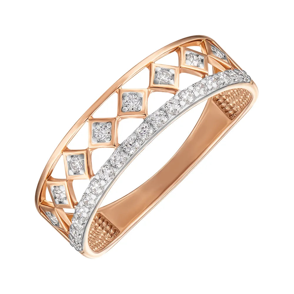Каблучка з комбінованого золота з фіанітами 17069/01/1/13