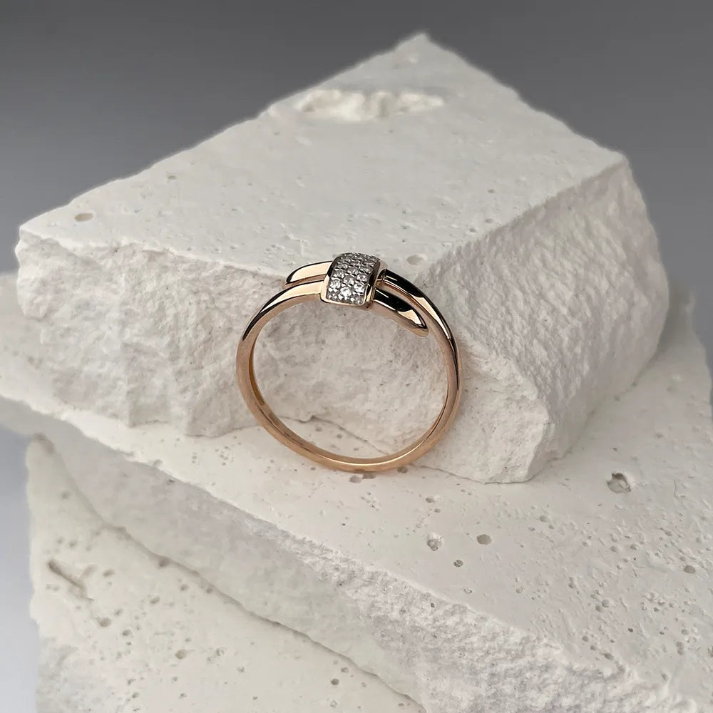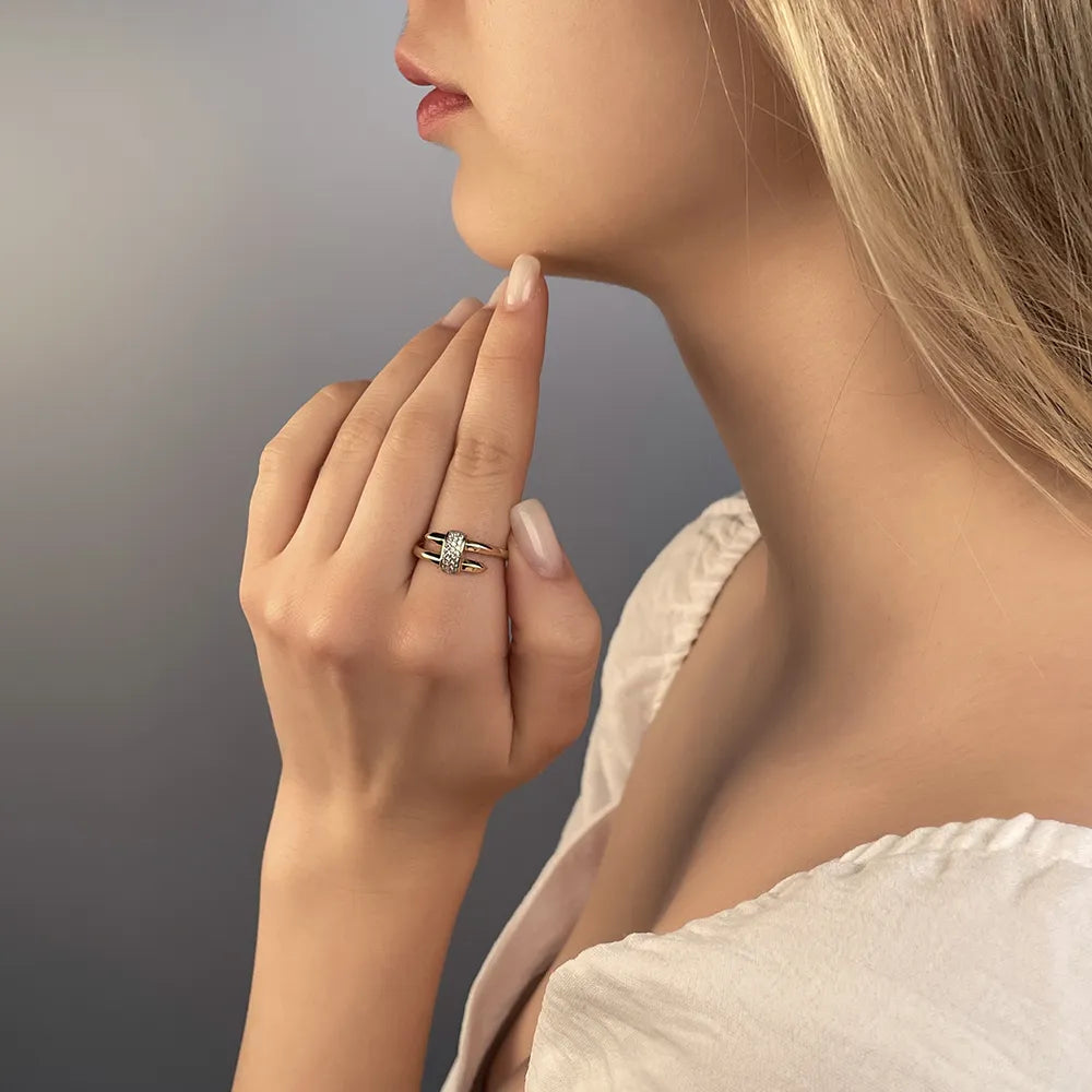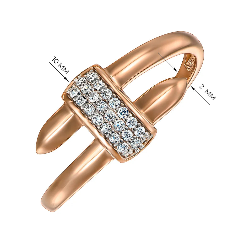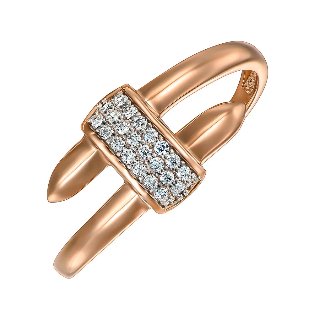 Каблучка з комбінованого золота з фіанітами 18657/01/1/1