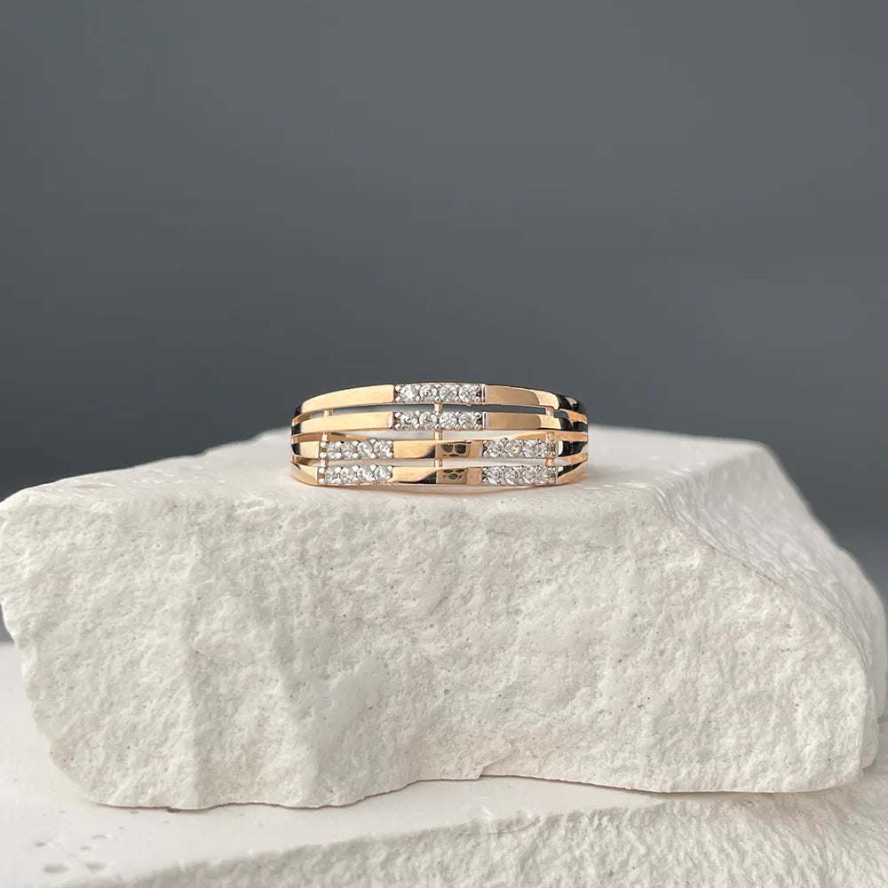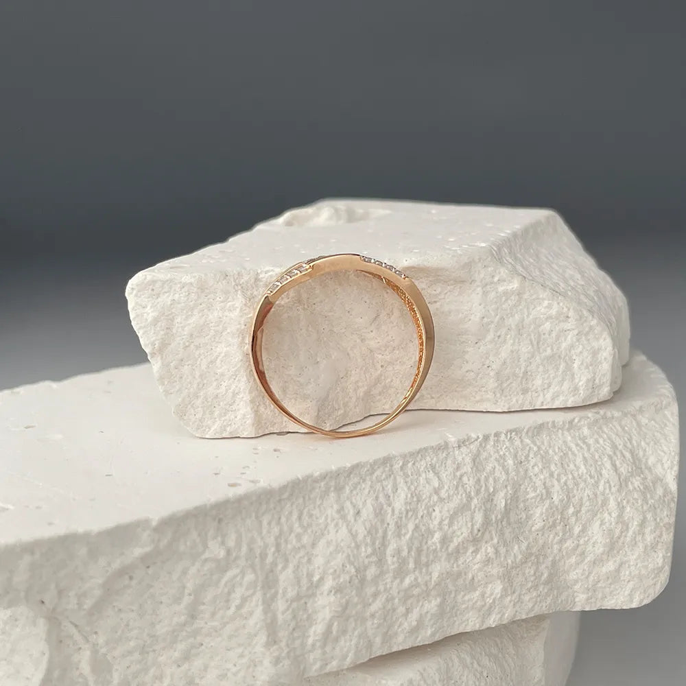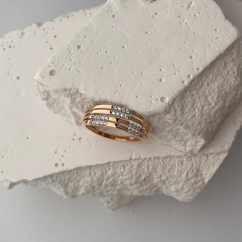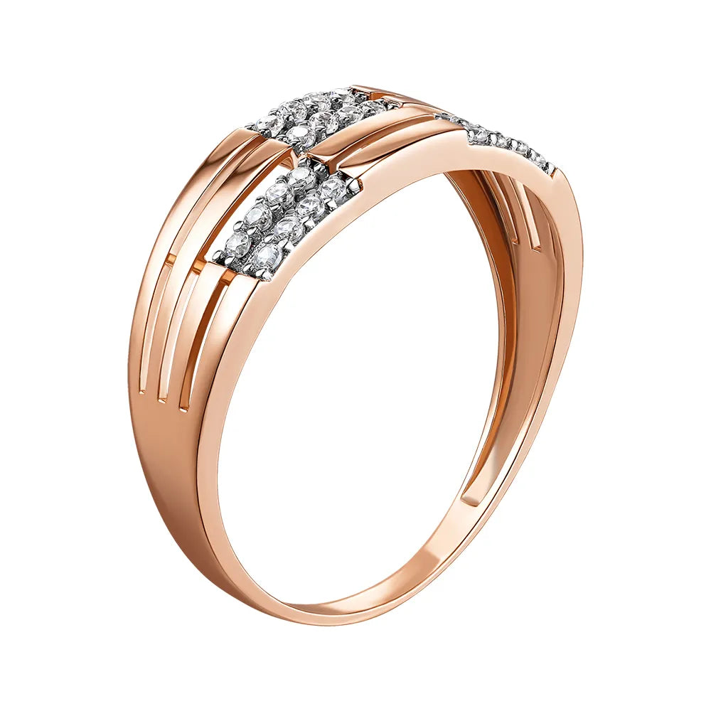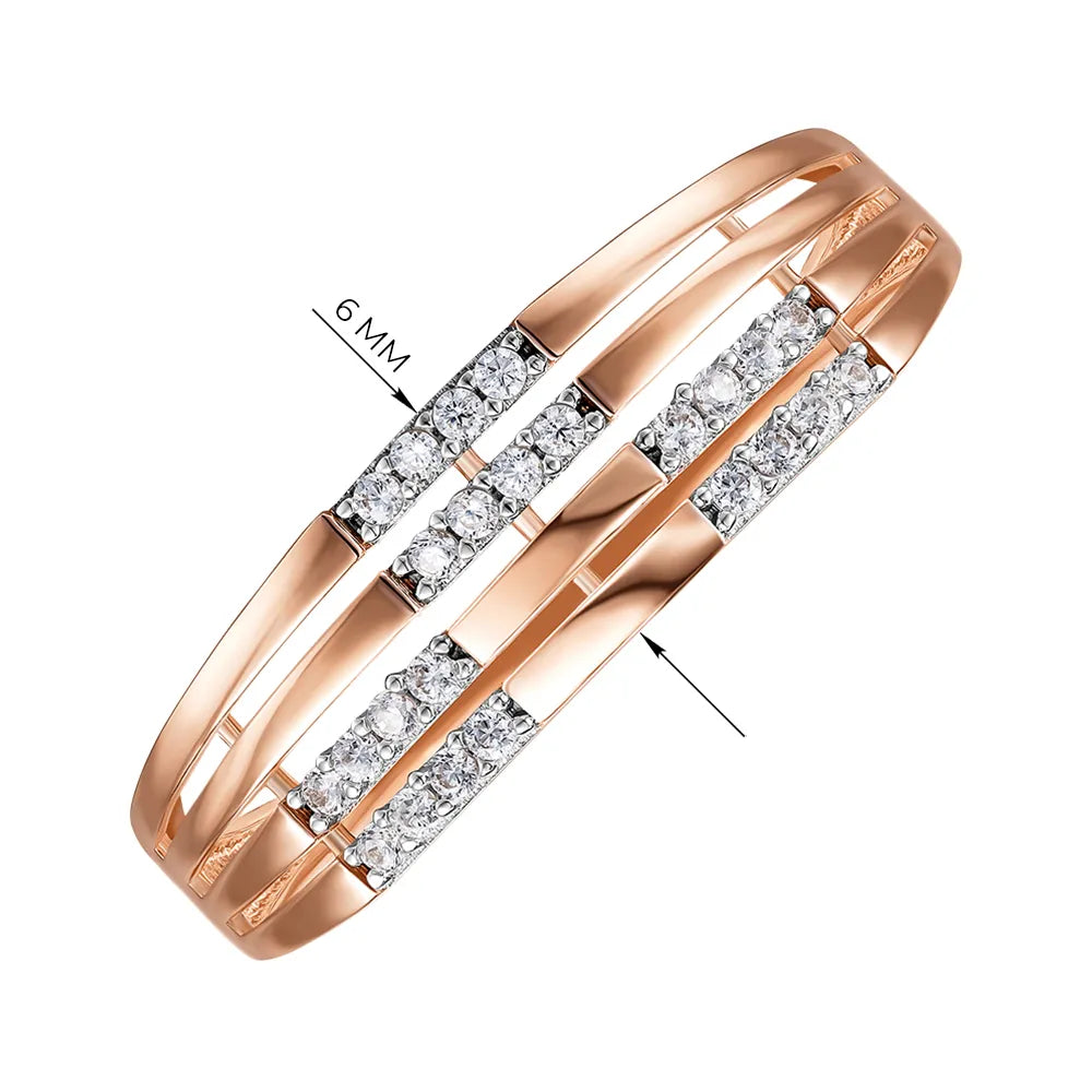 Каблучка з комбінованого золота з фіанітами F-2661-R/01/1