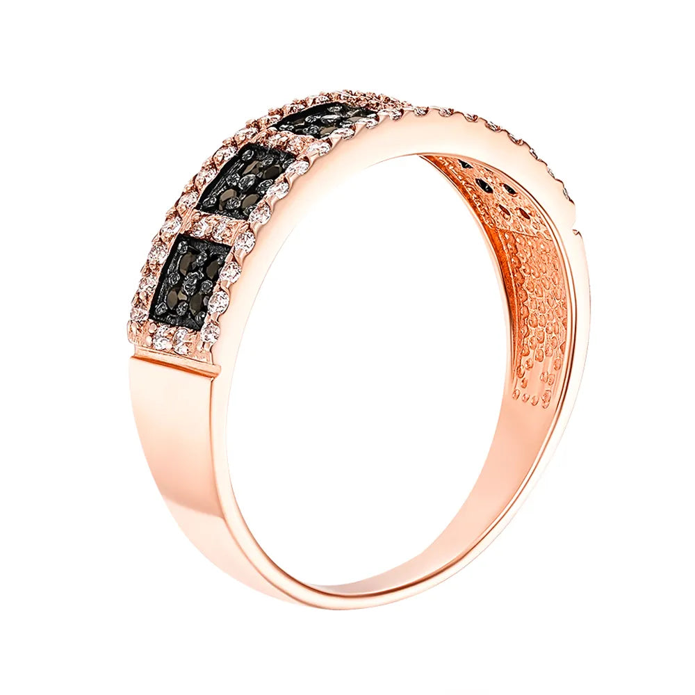 Каблучка з комбінованого золота з коньячними та білими фіанітами 12980/01/1/14