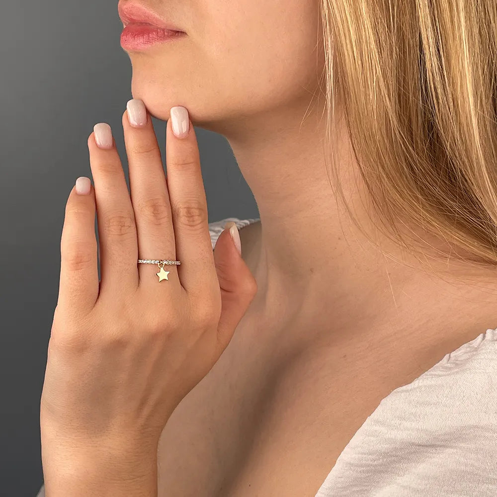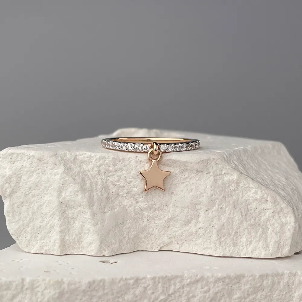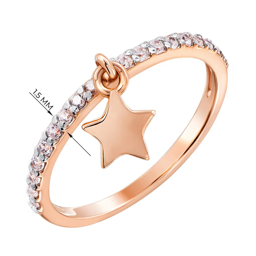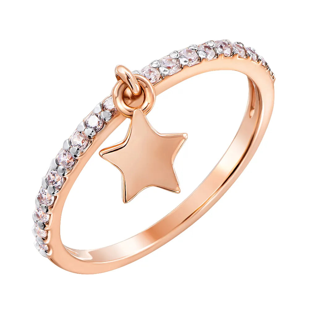 Каблучка Зірочка з комбінованого золота з підвіскою та фіанітами 13282/01/1/13