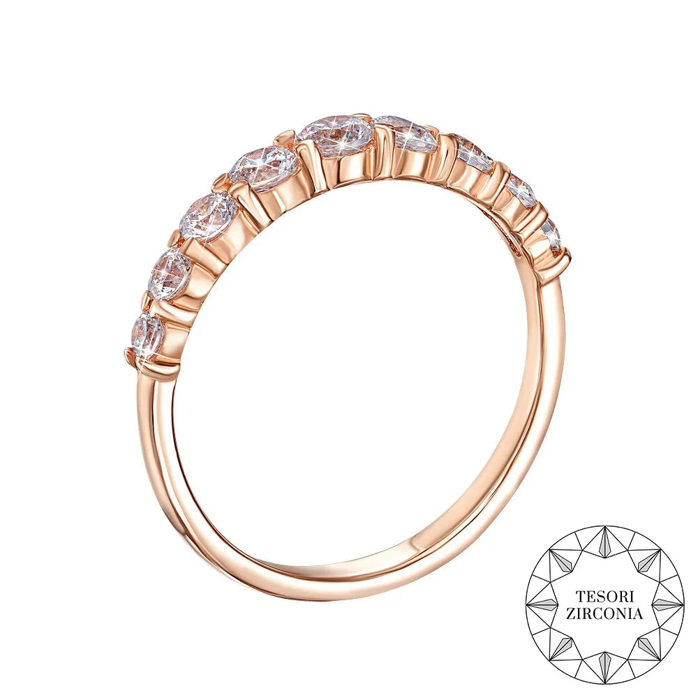 Золота каблучка з фіанітами Tesori Zirconia - це символ елегантності та сучасного стилю, яке стане ідеальним подарунком на найзначніші події в житті ваших близьких.