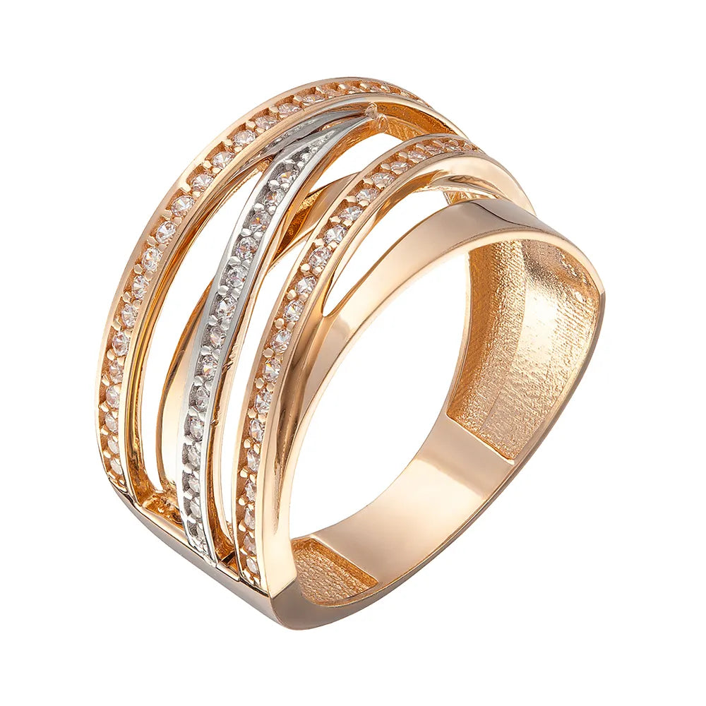 Каблучка з комбінованого золота з доріжками фіанітів 1191357101