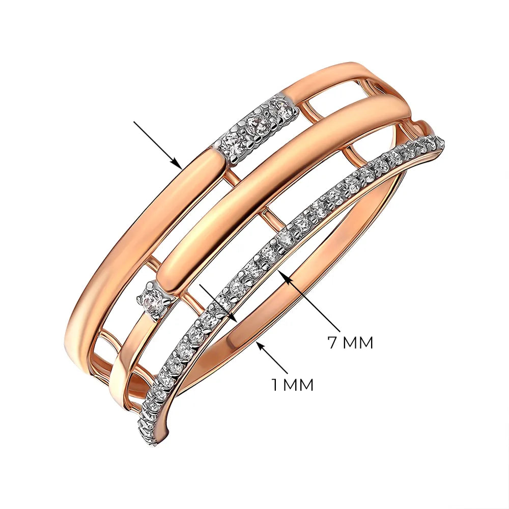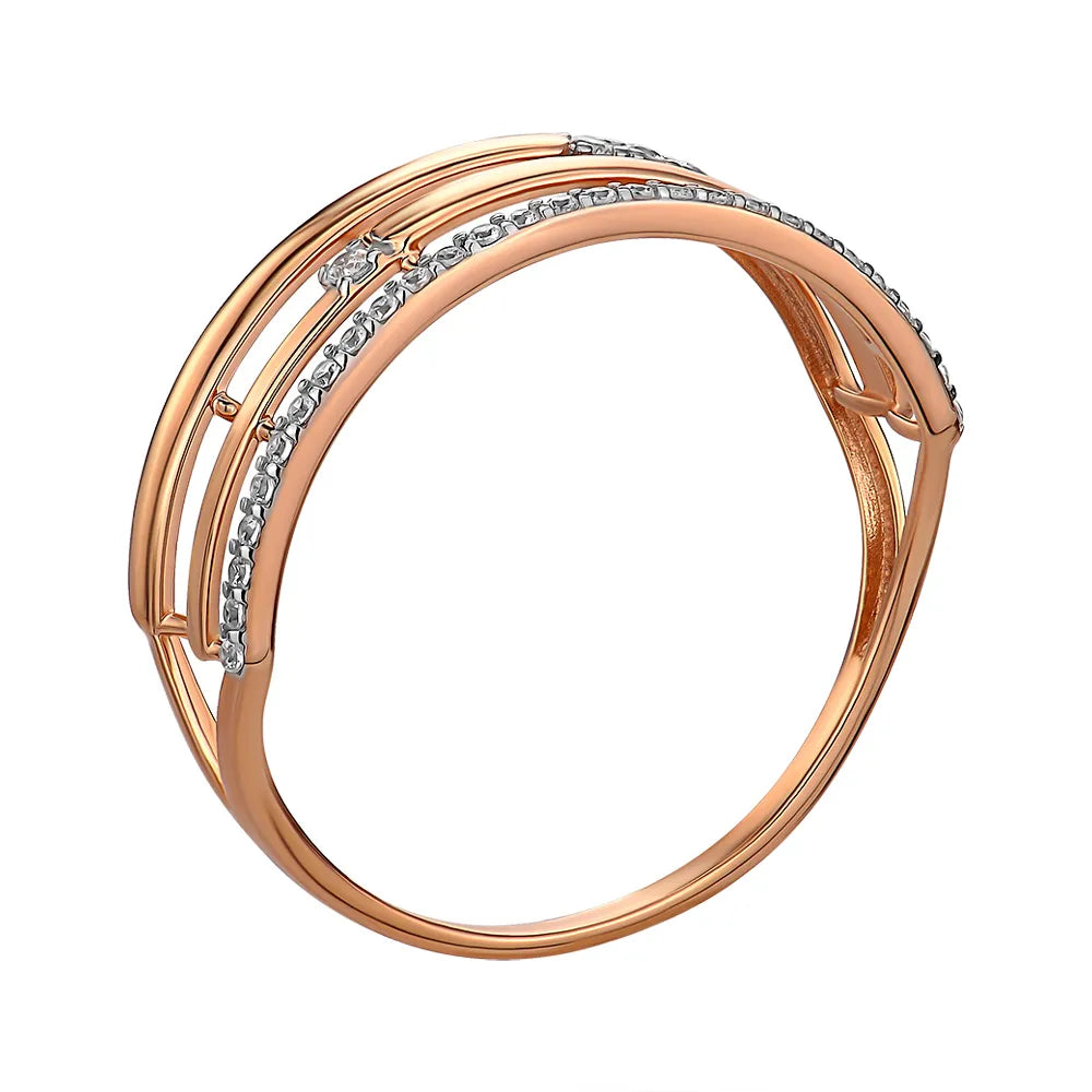 Золота каблучка в комбінованому кольорі з фіанітами 13835/01/1/927