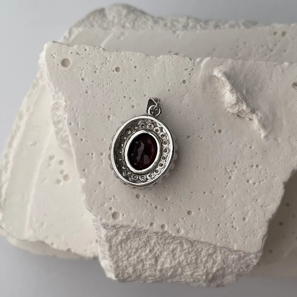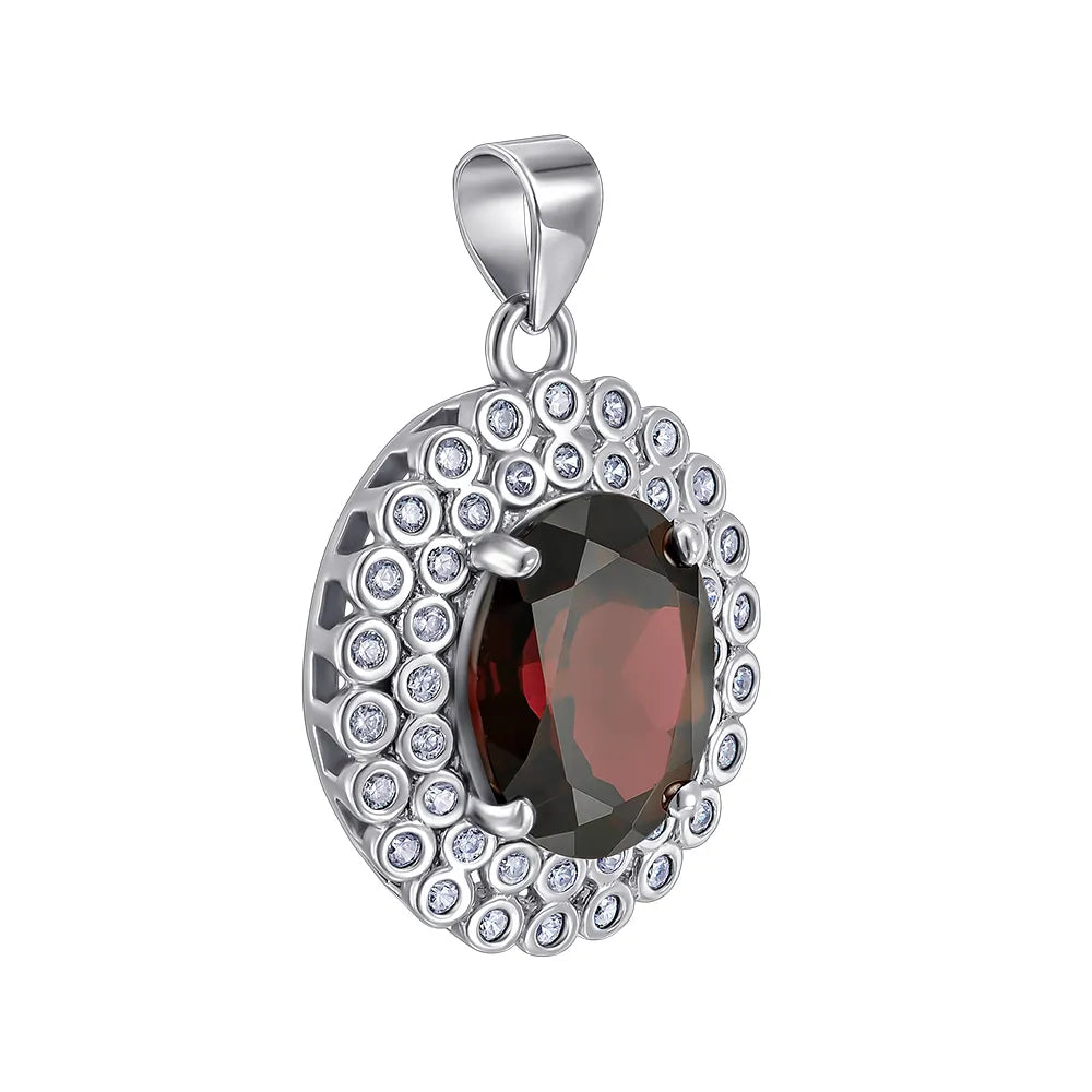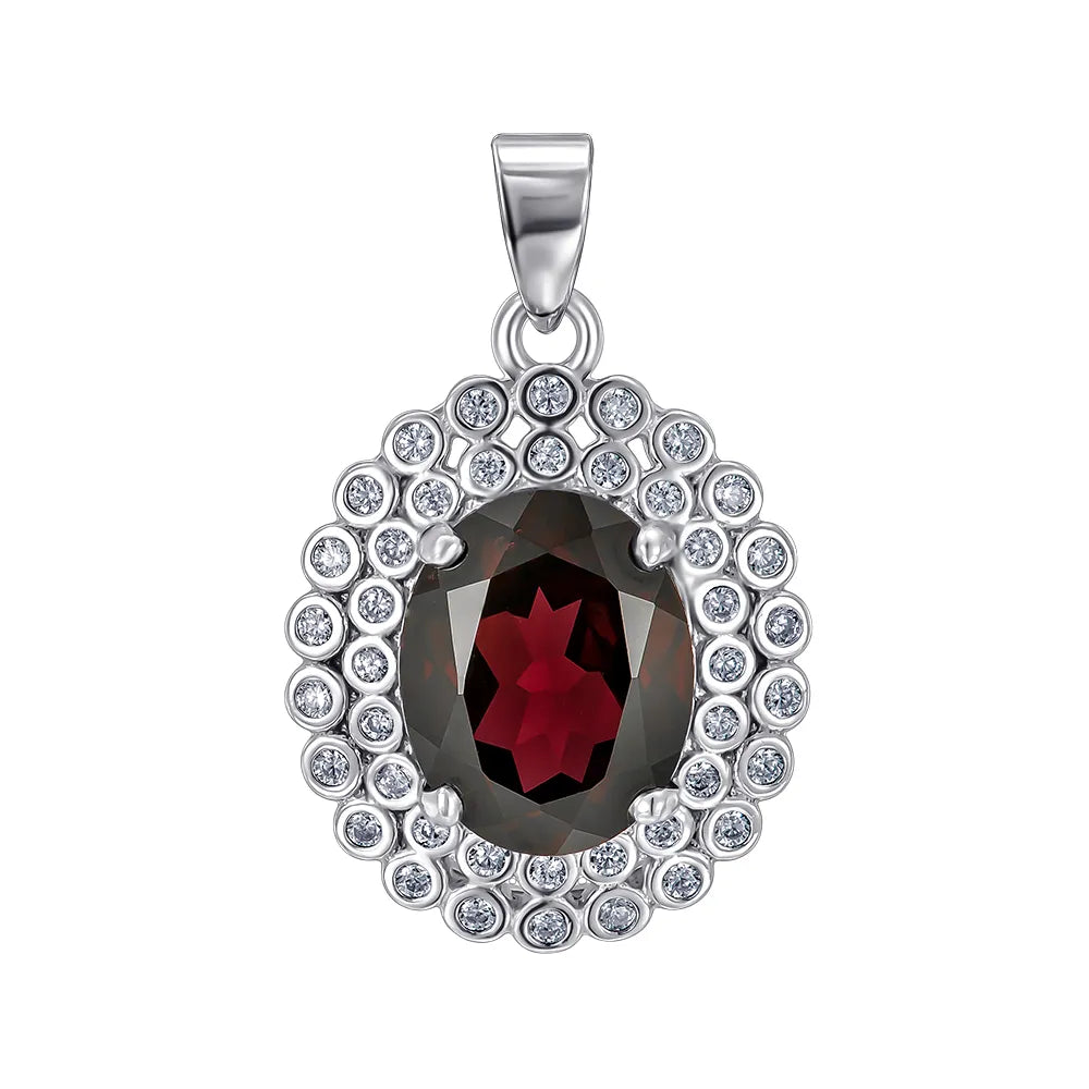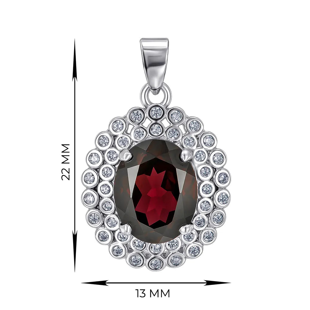 Підвіска з срібла з гранатом та фіанітами NA675-P/12/6413