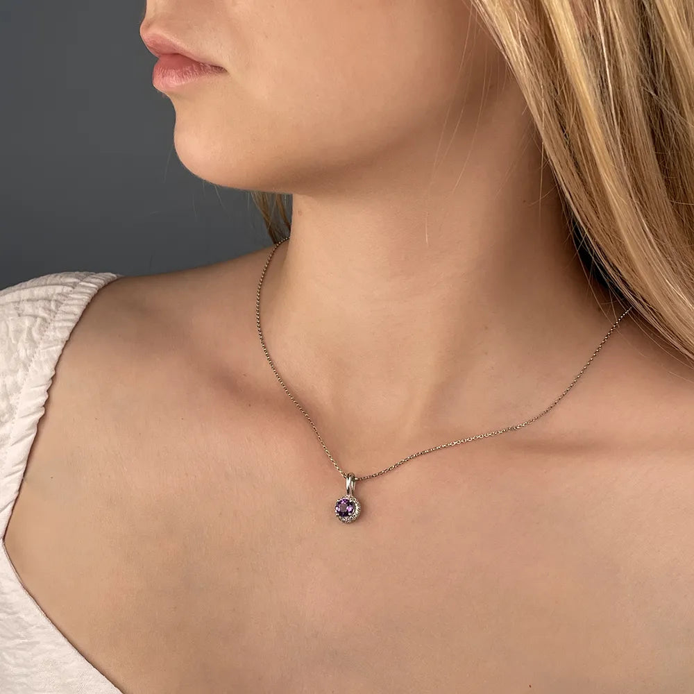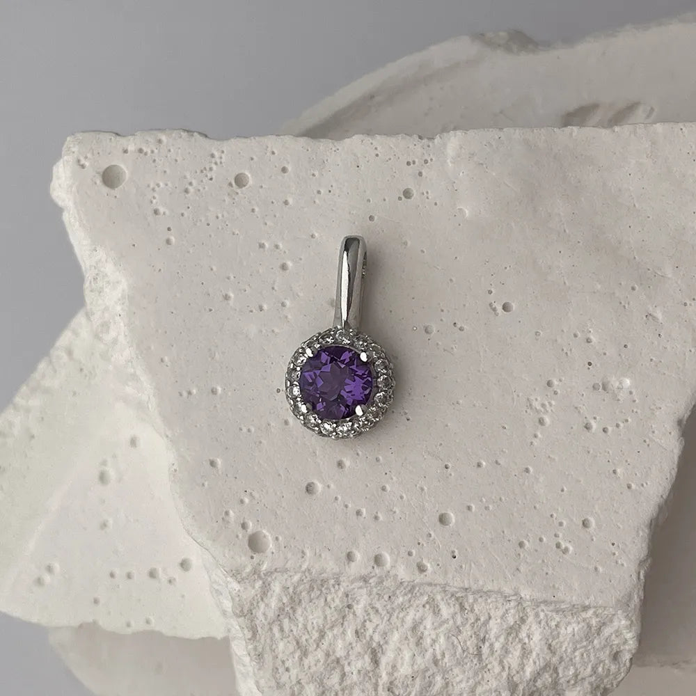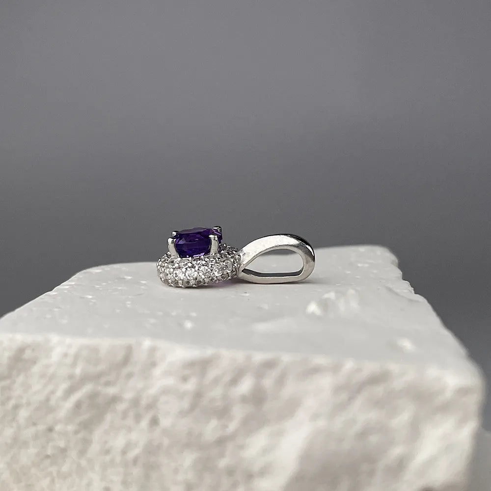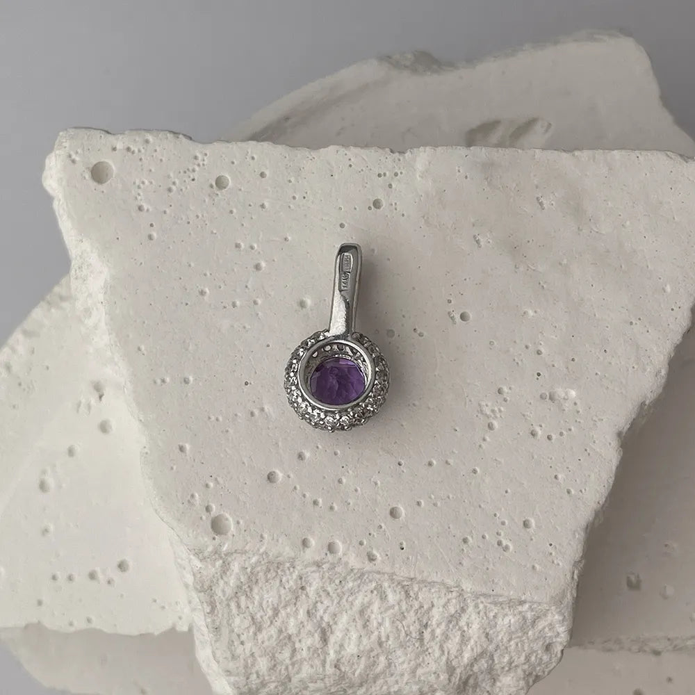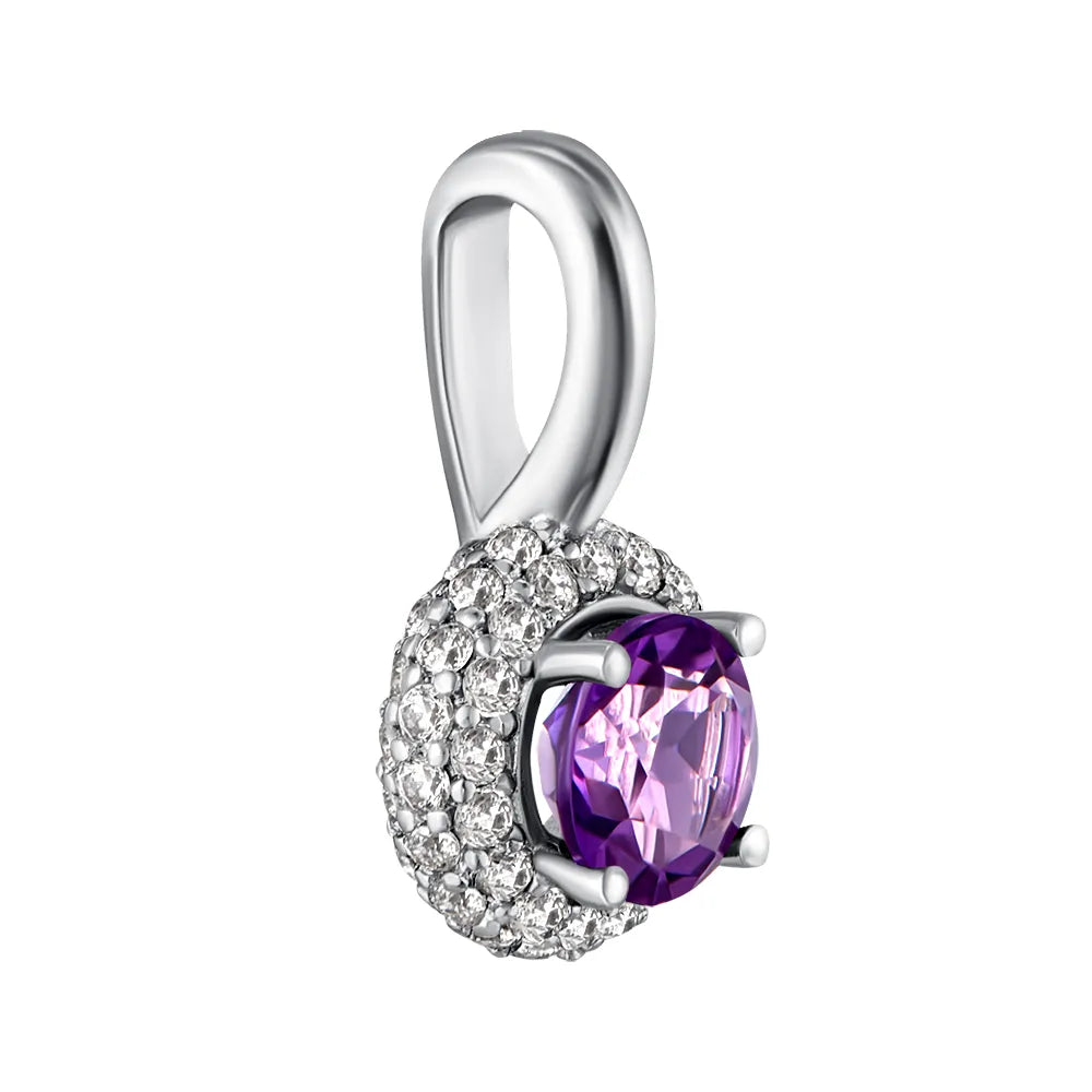 Підвіска зі срібла з аметистом та фіанітами 3739р-AMT