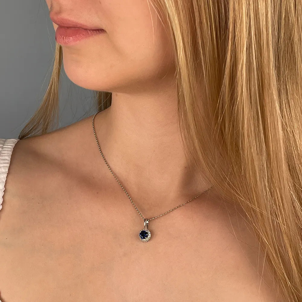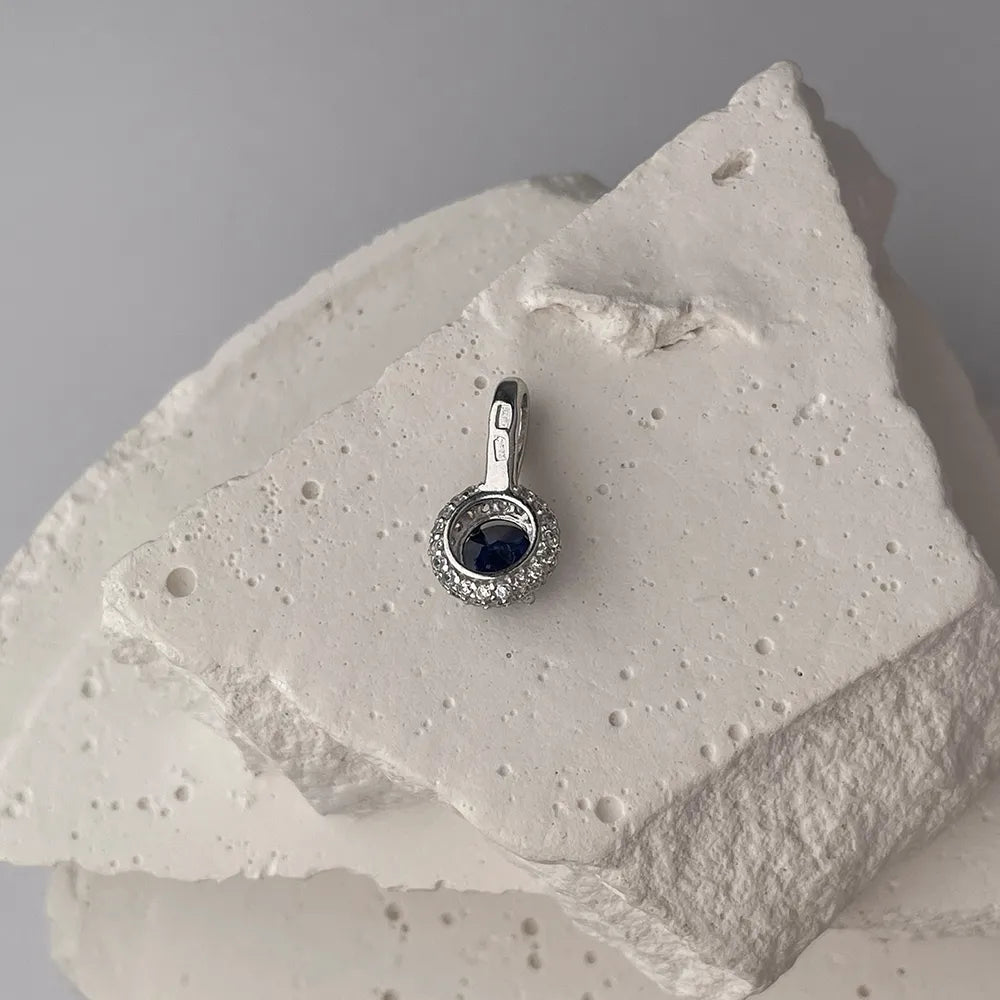 Підвіска зі срібла з сапфіром гідротермальним та фіанітами 3739р-HSPH