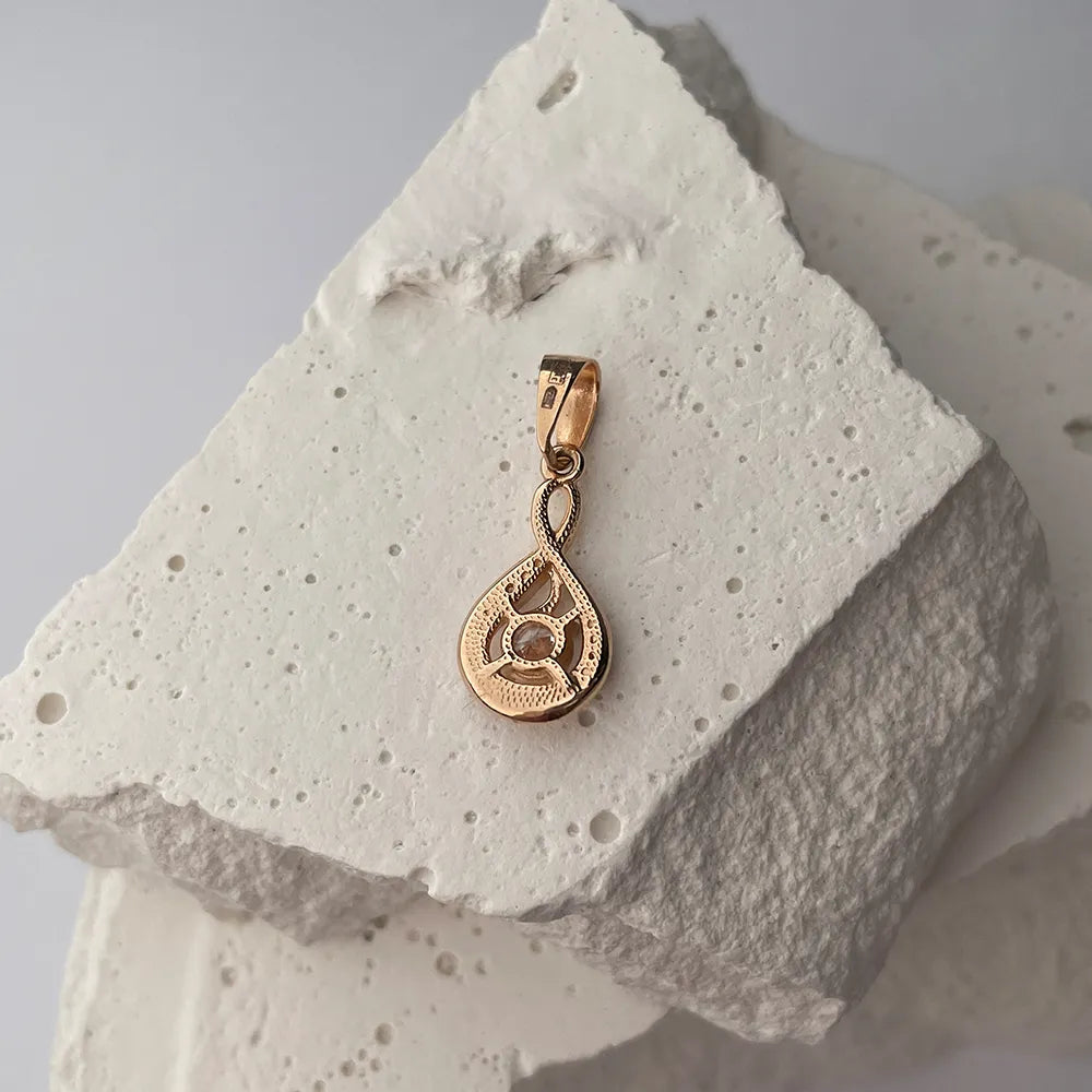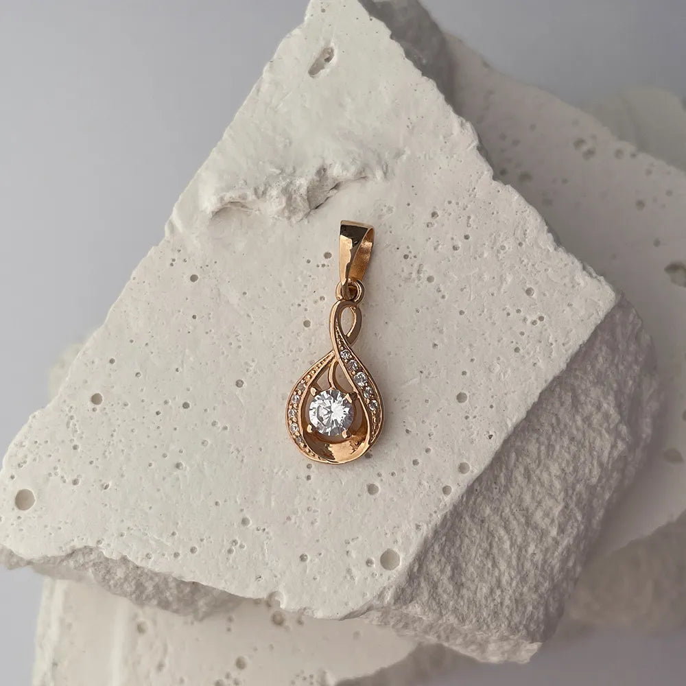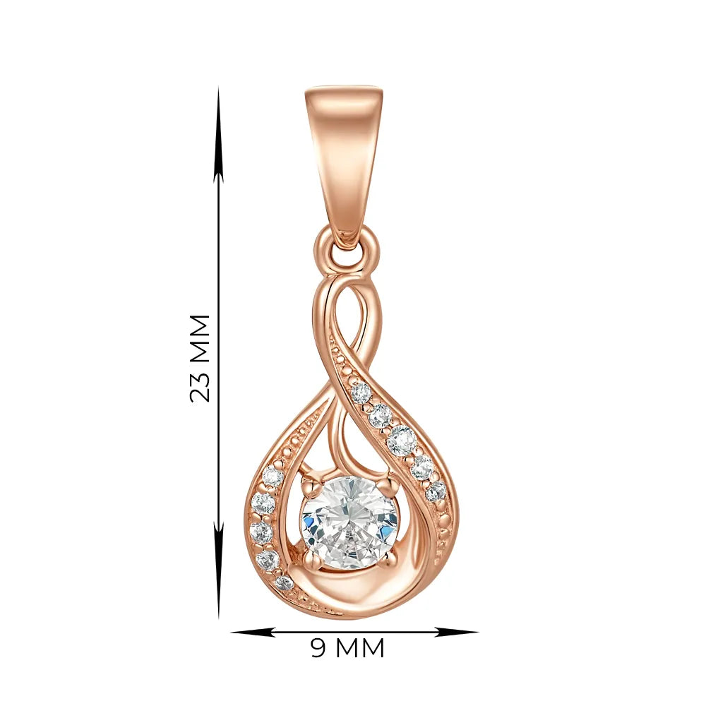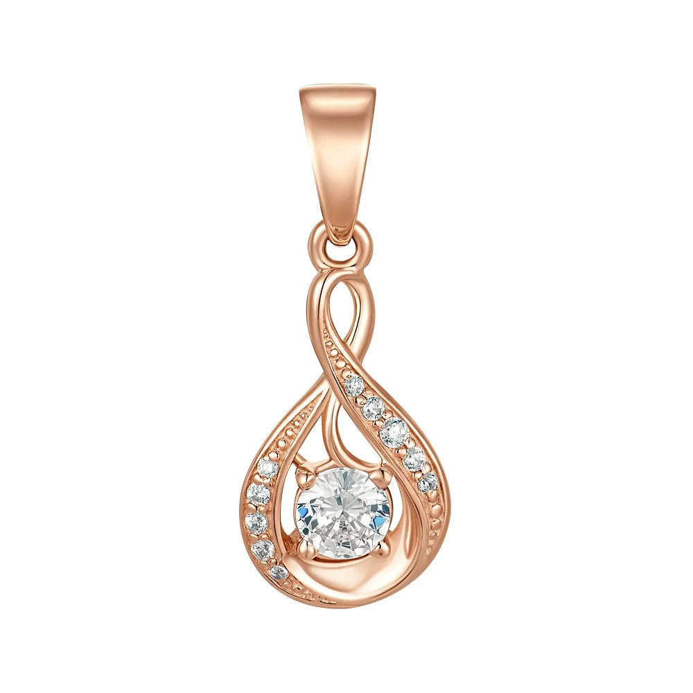 Червоне золото завдяки своєму ніжному рожевому відтінку чудово підкреслює блиск фіанітів і надає підвісу особливу теплоту.