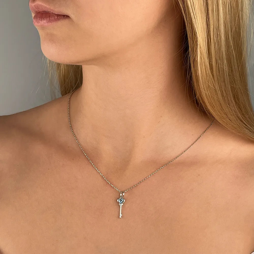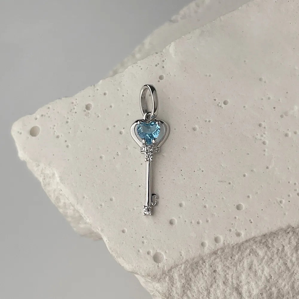 Підвіска-ключ з білого золота з топазом та фіанітами 550094/02/1/7546