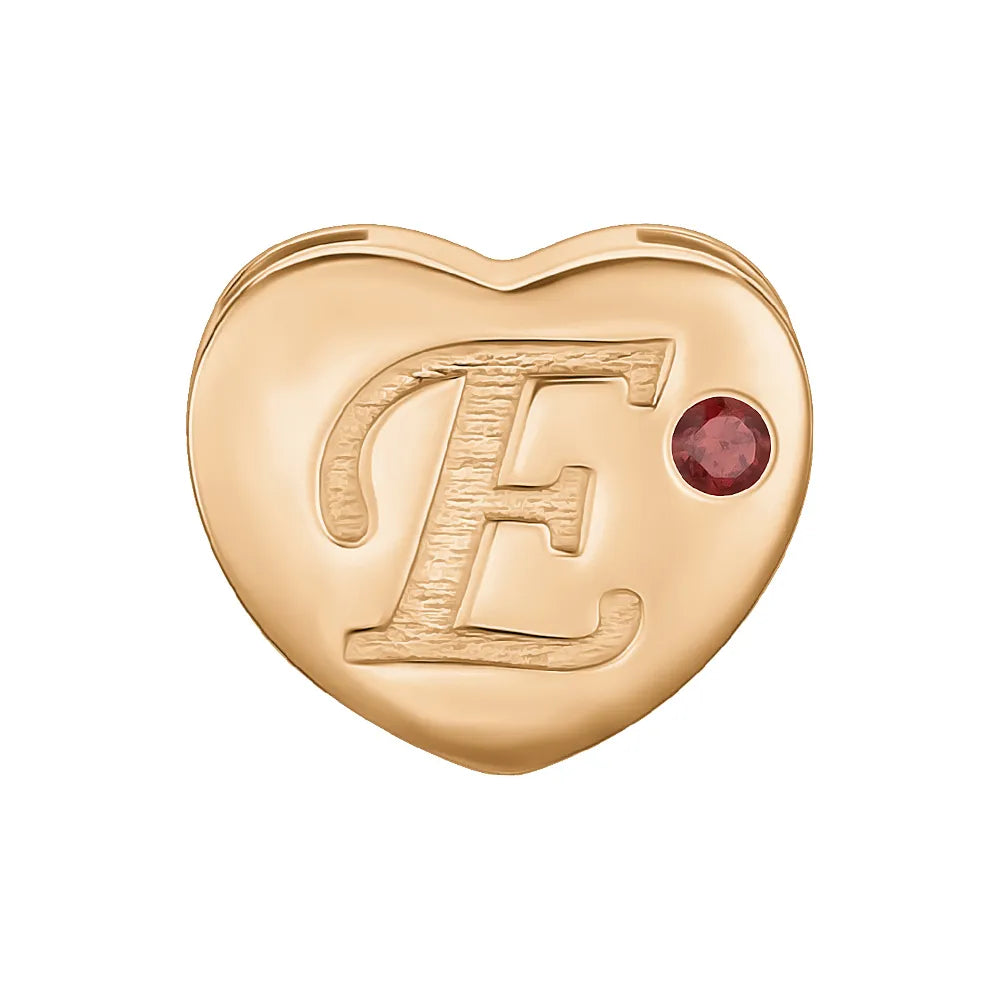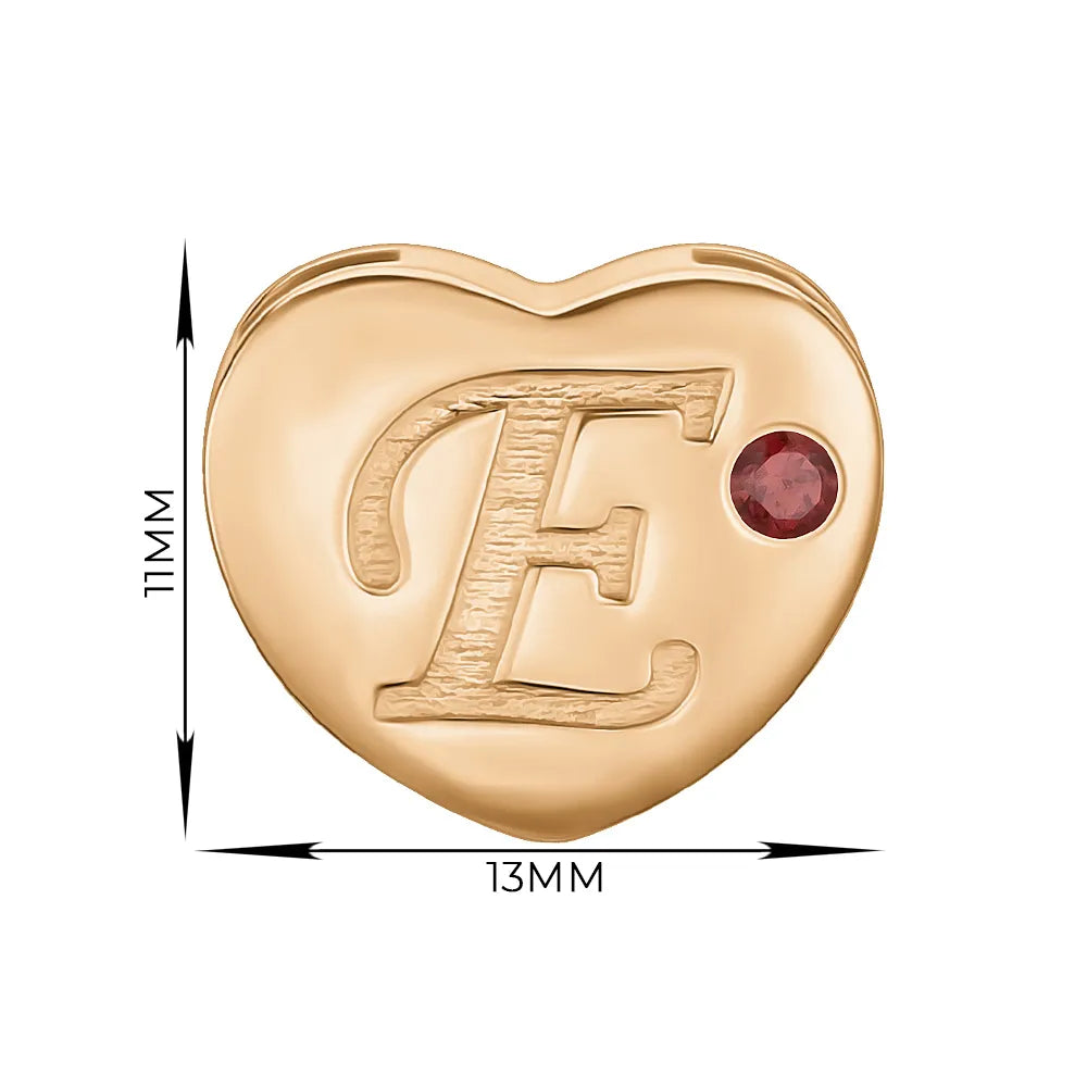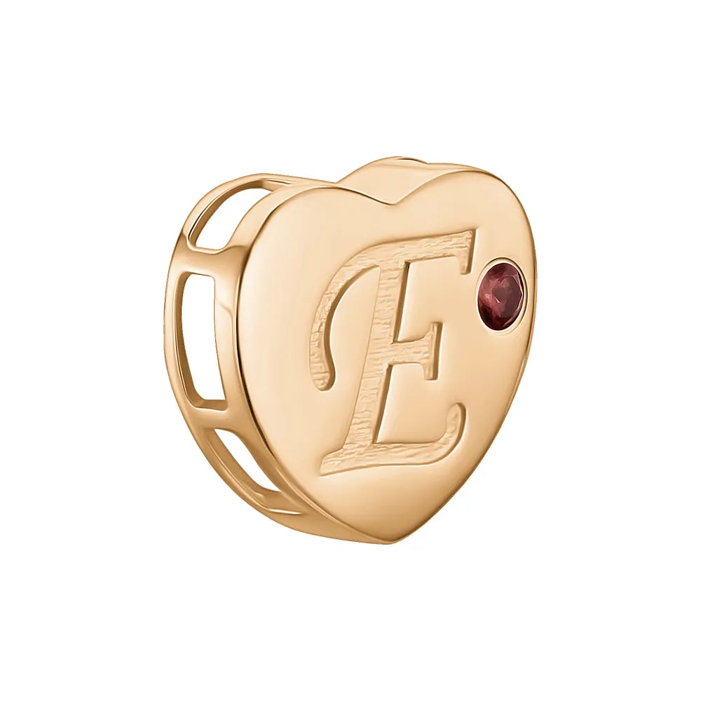 Підвіска-серце з червоного золота із літерою "Е" та гранатом 550126-Е/01/0/7132