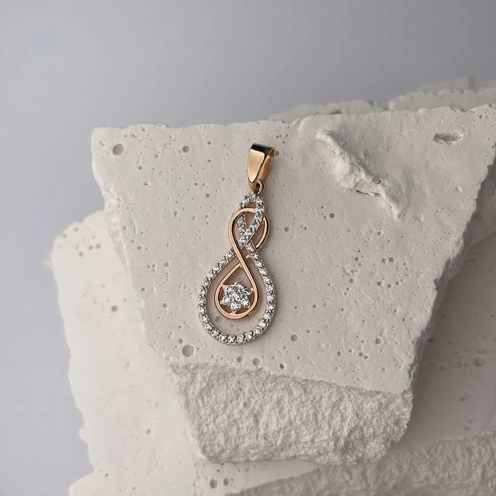 Дорогоцінна прикраса виконана із золота 585 проби з благородним червоним відтінком. Особливу розкіш виробу надає родієве покриття, яке не тільки захищає поверхню, а й надає їй неповторного сяйва. Ювелірний шедевр прикрашають 43 фіаніту бездоганного огранювання: 36 каменів розміром 0,33 карата і 7 каменів розміром 0,12 карата.