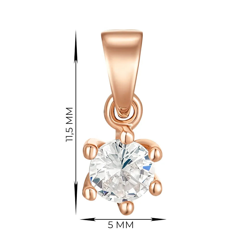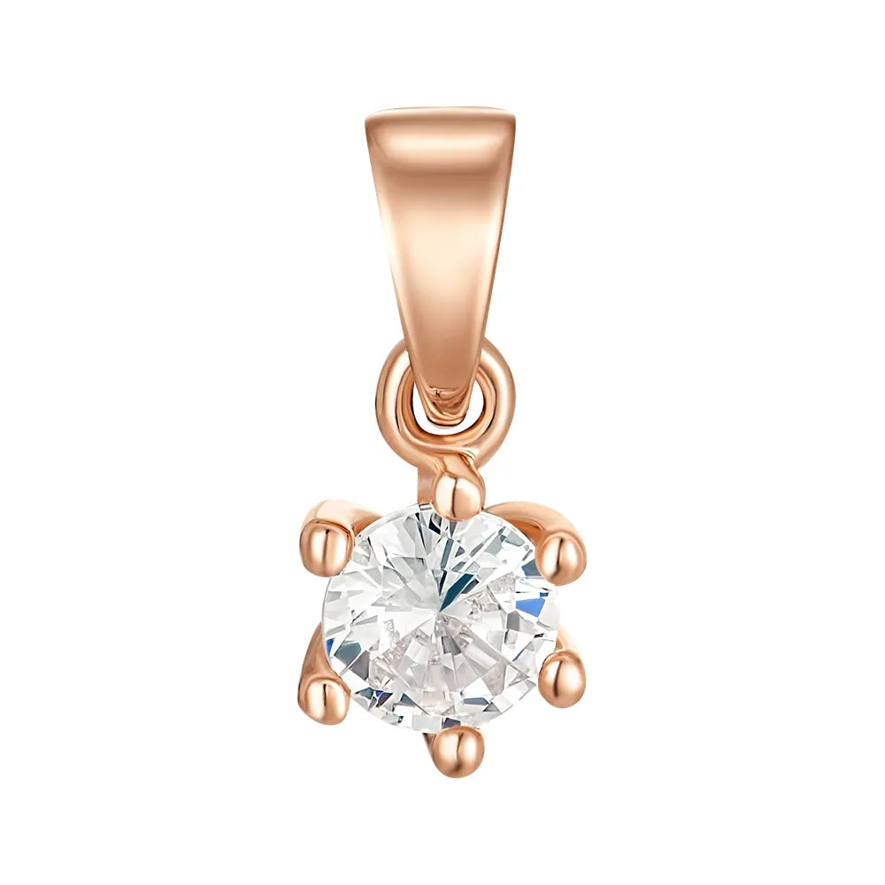 В ювелірному магазині представлено вишукане підвіс із червоного золота, що втілює в собі гармонію мінімалізму та класичної елегантності. Ця витончена прикраса привертає увагу своєю лаконічністю та блискучим фіанітом.